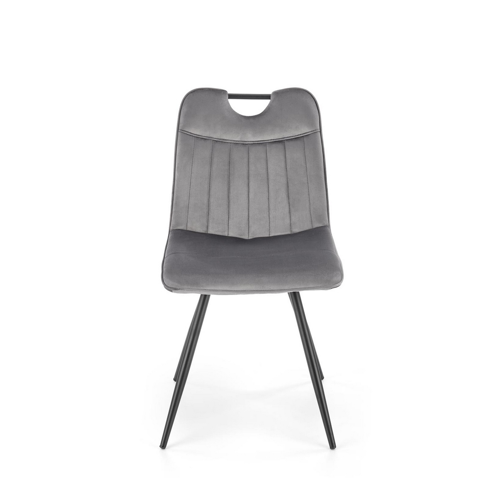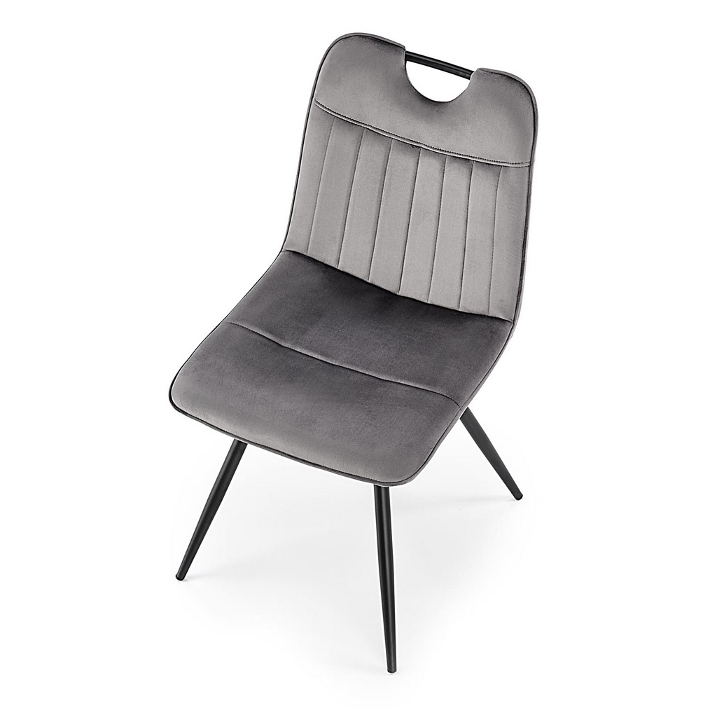 Sedadlo je čalouněné hebkou látkou s dekorativním vzorem na opěradle. Část výztuhy opěradla je bez čalounění a slouží jako madlo, díky kterému židli kdykoli snadno přemístíte.