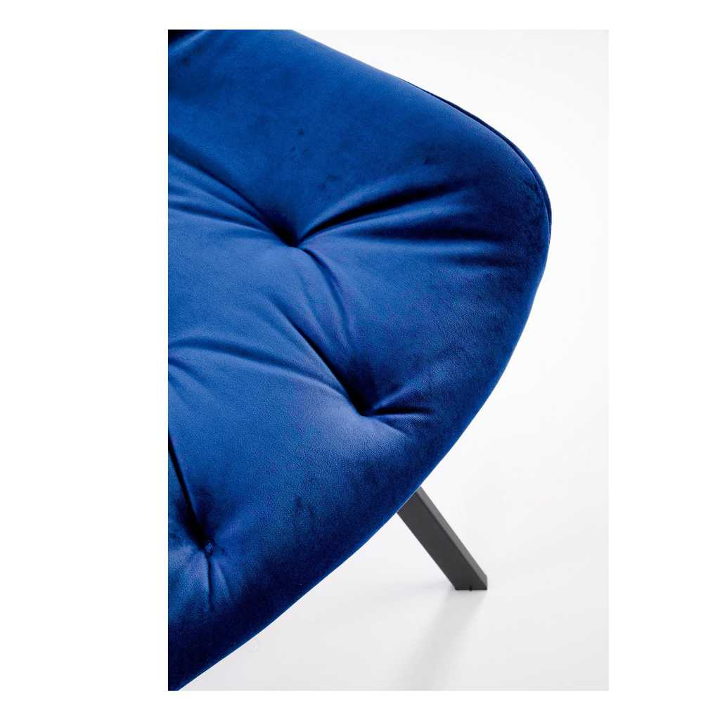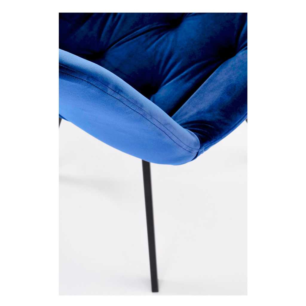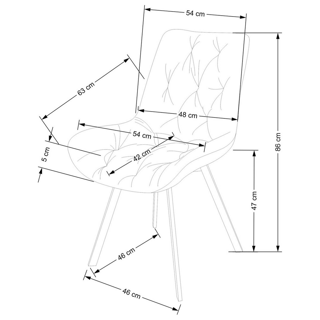 Sedadlo je čalouněné hebkou látkou s vtaženými knoflíky. Tento vkusný designový prvek ozvláštňuje jinak minimalistický vzhled židle.