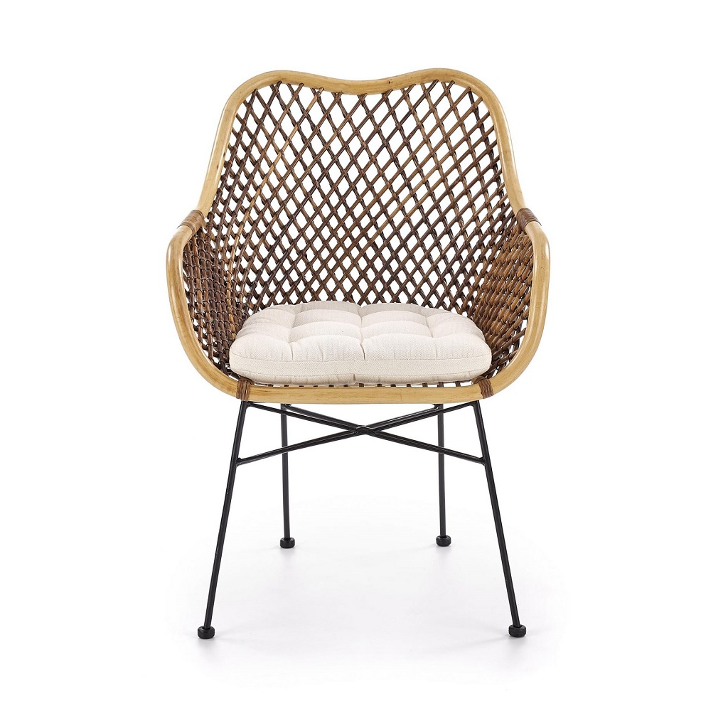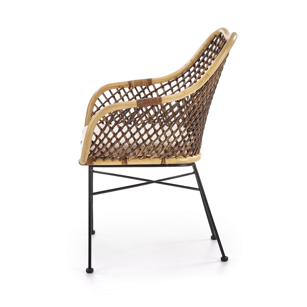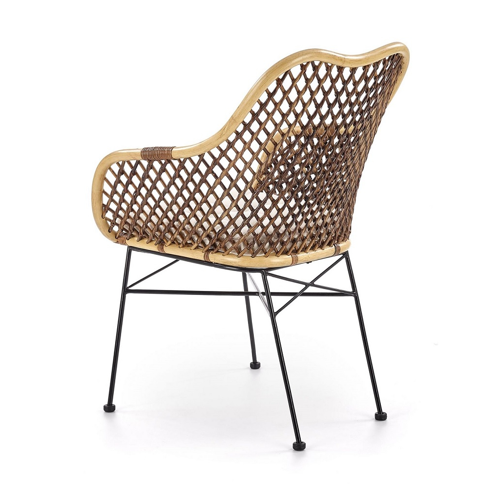 Židle je vybavena stabilní konstrukcí v podobě čtyř nohou, které jsou vyrobeny z pevného kovu v černé barvě. Jsou navíc vybaveny také koncovkami proti poškrábání podlahy. Sedák je stejně jako opěrák vyroben z ratanu. Jídelní židle disponuje také tvarovanými područkami.