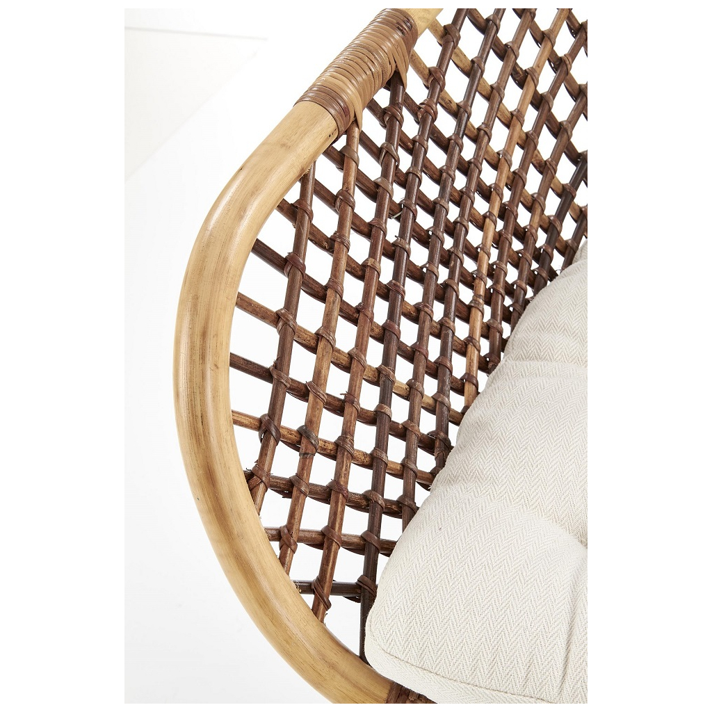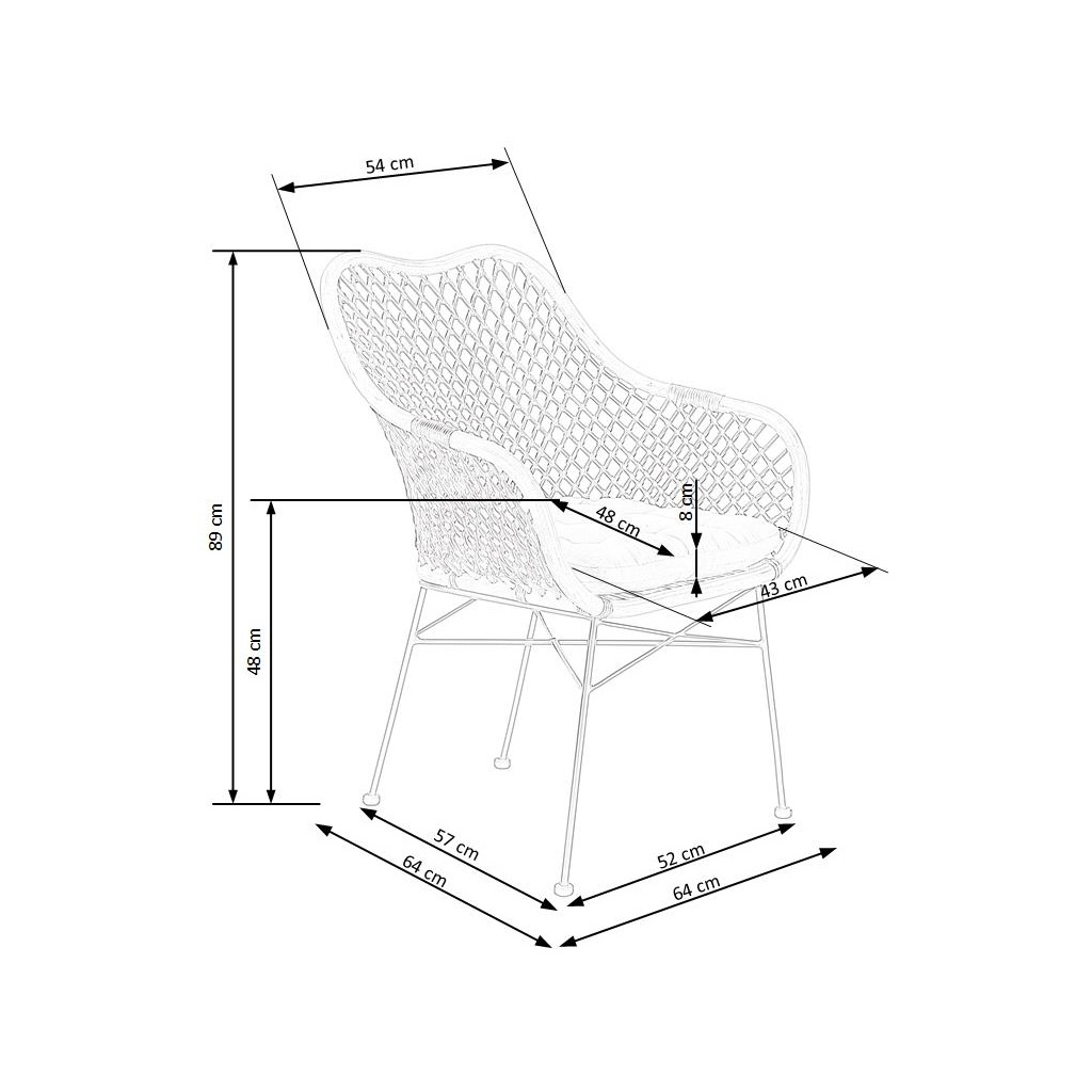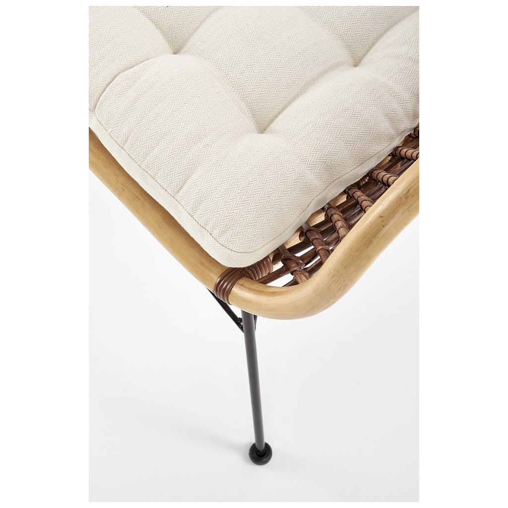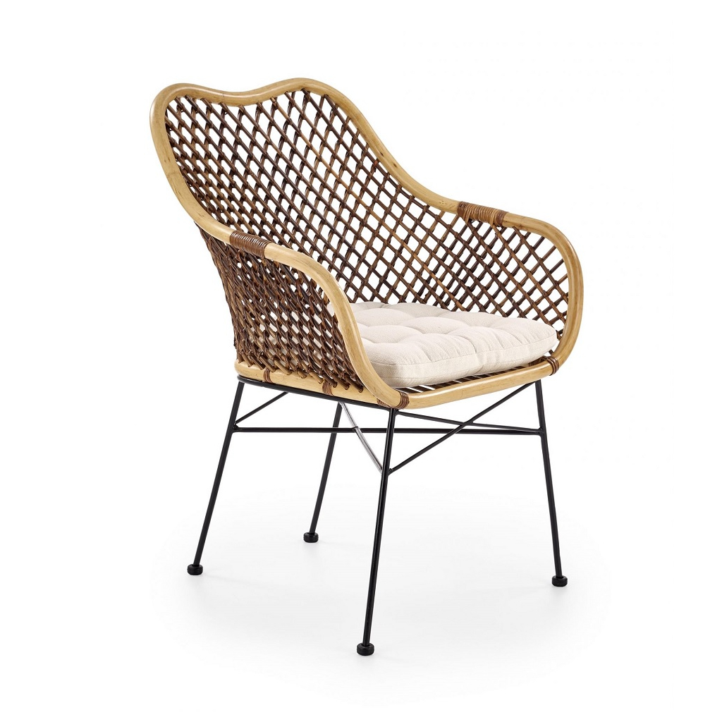 Židle je vybavena stabilní konstrukcí v podobě čtyř nohou, které jsou vyrobeny z pevného kovu v černé barvě. Jsou navíc vybaveny také koncovkami proti poškrábání podlahy. Sedák je stejně jako opěrák vyroben z ratanu. Jídelní židle disponuje také tvarovanými područkami.