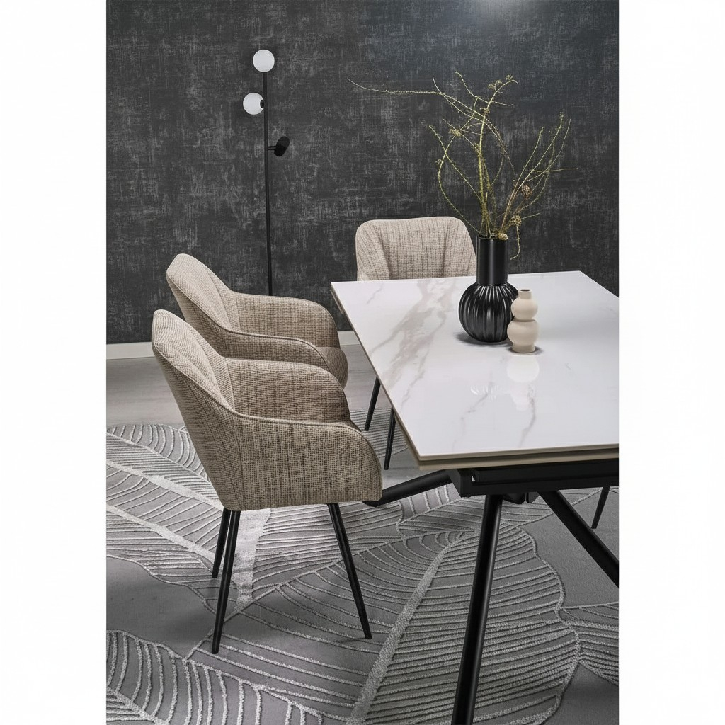 Jídelní židle Reya zaujme svým pohodlným a zároveň pevným provedením. Sedák a opěrák jsou čalouněné kvalitní látkou, která zajišťuje komfortní sezení i při delším používání. Pevná kovová podnož zaručuje stabilitu a nosnost až 120 kg, což dělá z této židle spolehlivý doplněk do každé jídelny.