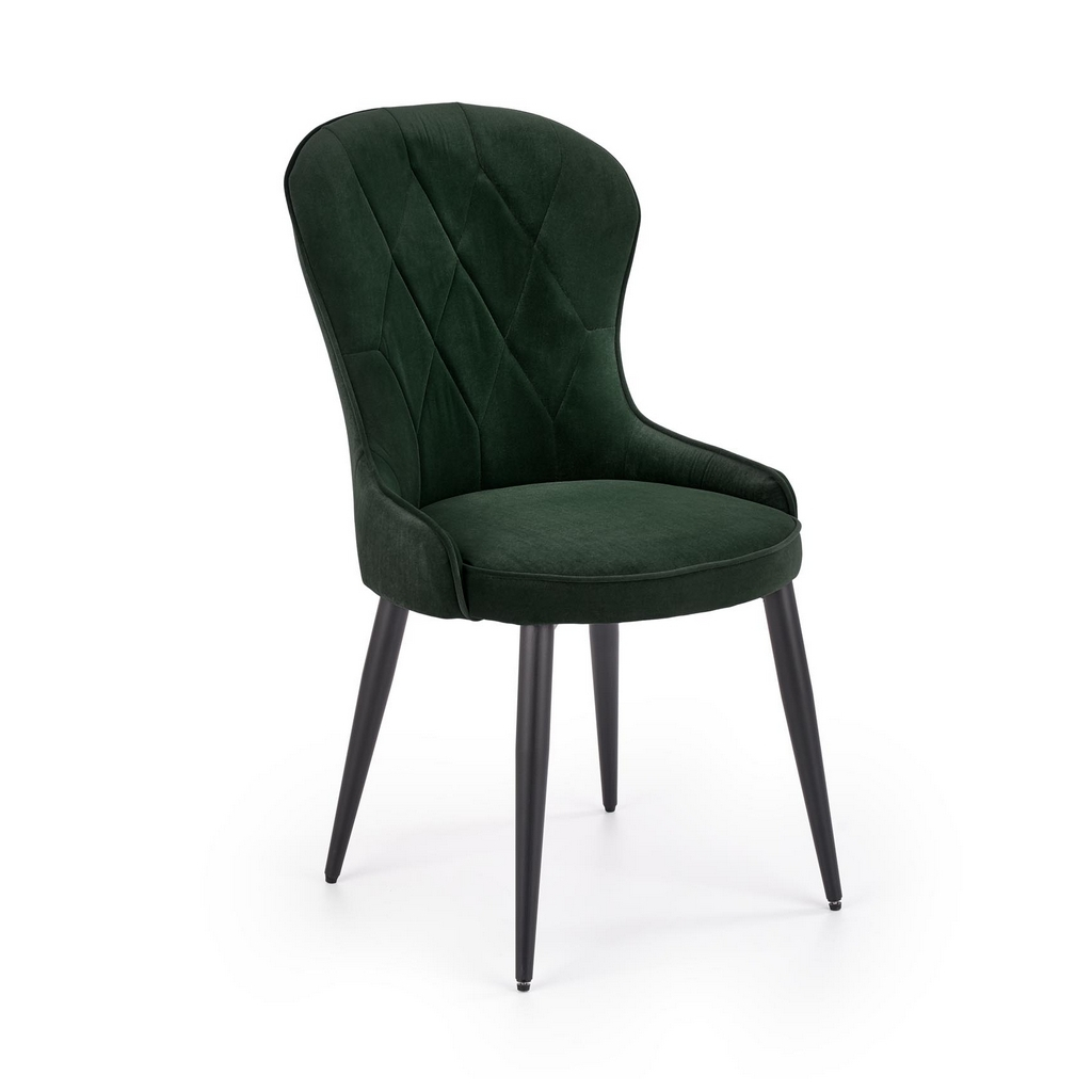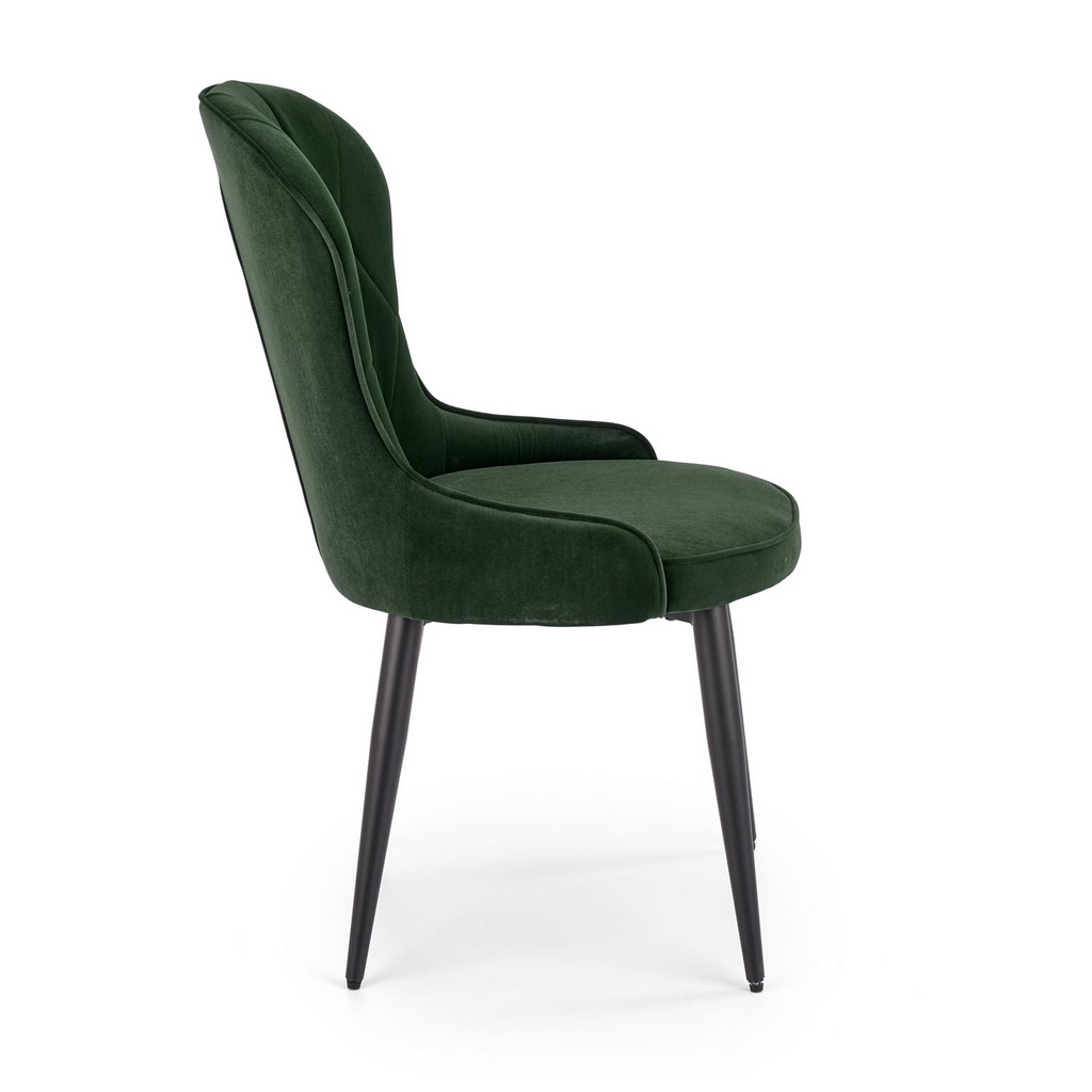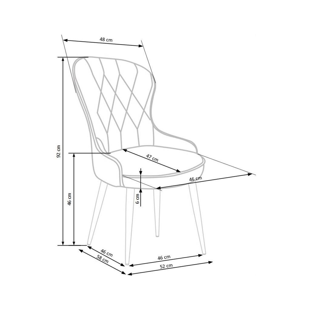 Tato jídelní židle je navržená v elegantním stylu. Skvěle vynikne nejen v kavárnách, ale hodí se i do restaurací a domácností. Její konstrukce je utvořená z práškované oceli. Je potažená příjemnou látkou. Opěrák zdobí prošívka. Unese až 100 kg.