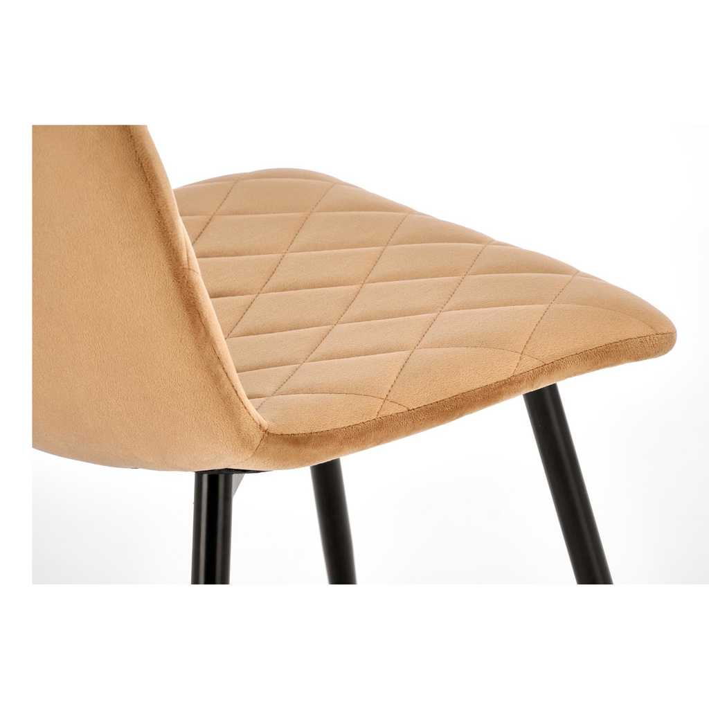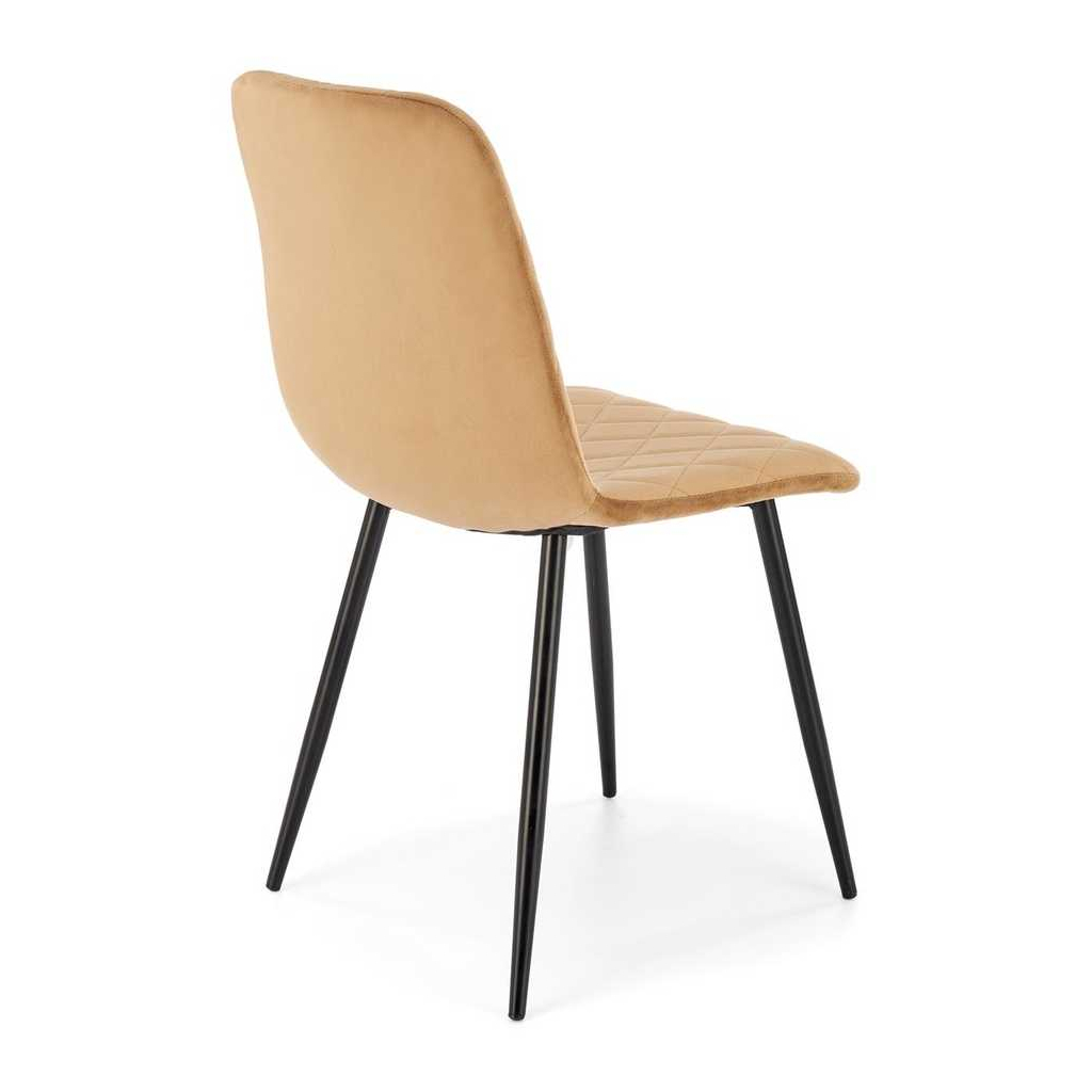 Sedák a opěradlo jsou potažené sametovou látkou, která je nejen příjemná na dotek, ale také opticky zútulní jakýkoliv interiér. Kosočtverečné prošívání na čalounění přináší dojem propracovanosti a dodává židli osobitý charakter.