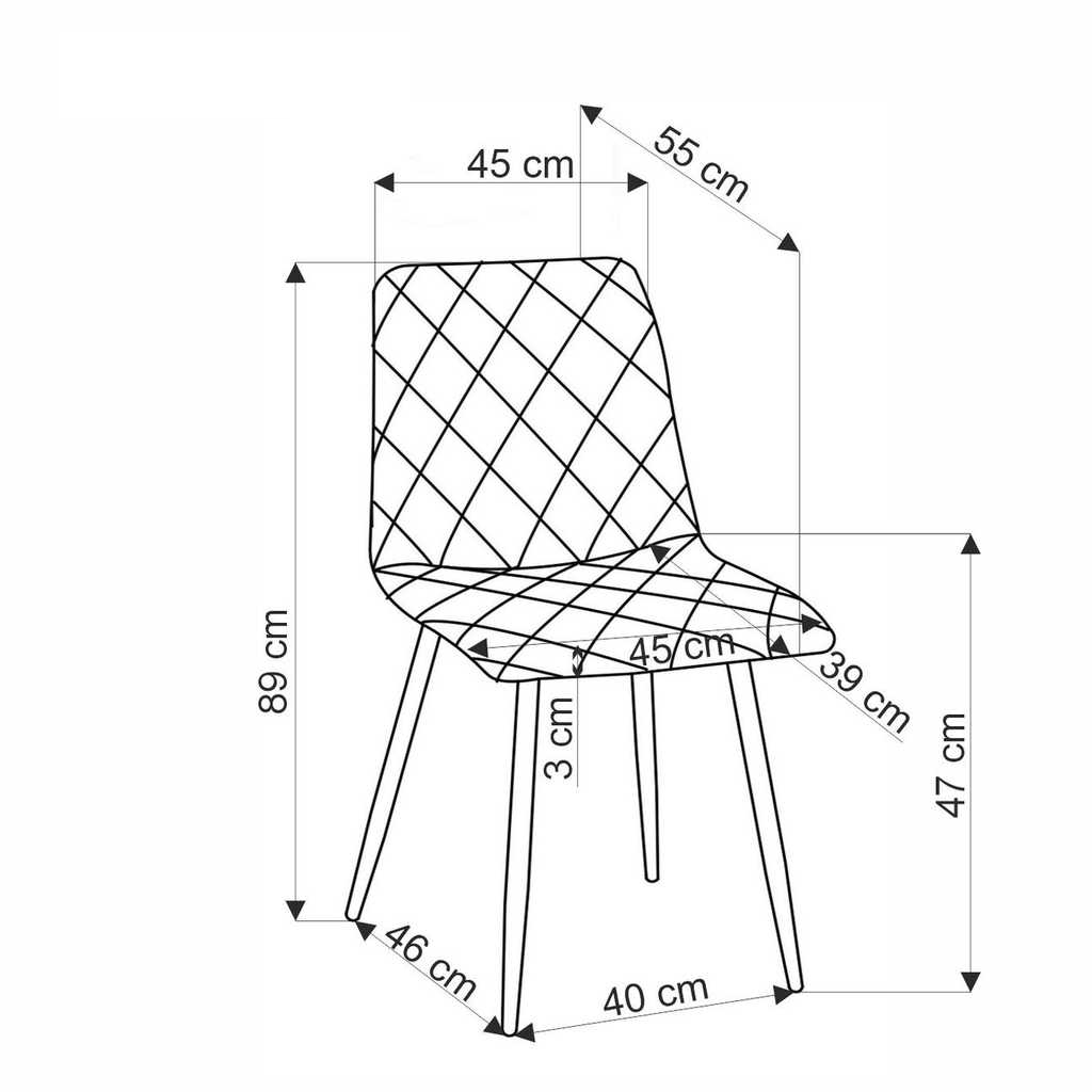 Sedák a opěradlo jsou potažené sametovou látkou, která je nejen příjemná na dotek, ale také opticky zútulní jakýkoliv interiér. Kosočtverečné prošívání na čalounění přináší dojem propracovanosti a dodává židli osobitý charakter.
