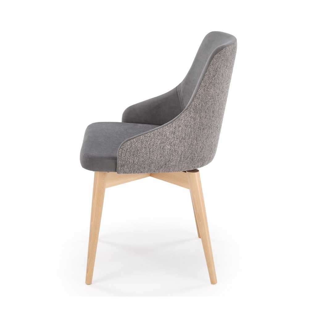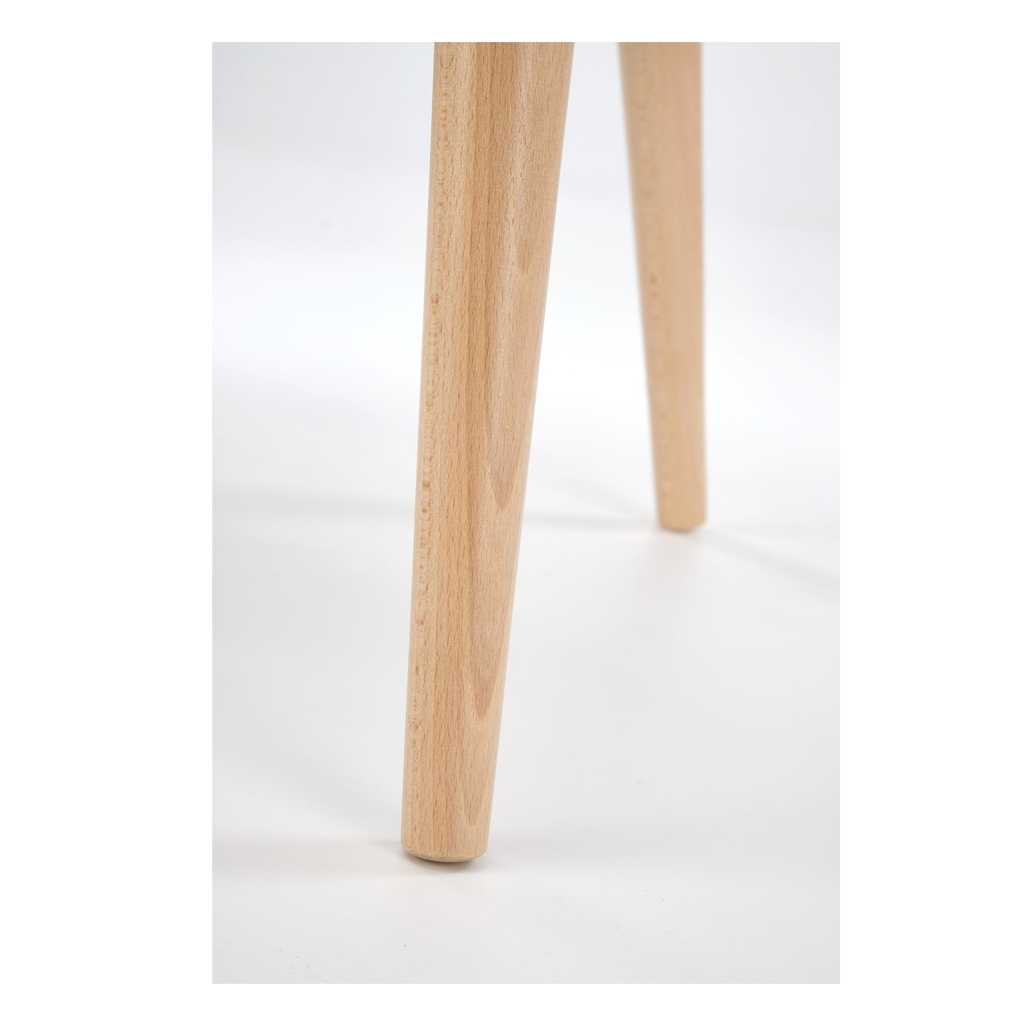 Po vzhledové stránce je židle skutečná klasika – robustní podnož z bukového masivu nese pohodlné sedadlo potažené látkou. Ta je na vnitřní straně jemnější pro maximální komfort, na zádech židle pak o něco hrubší a tedy odolnější vůči otěru i zašpinění.