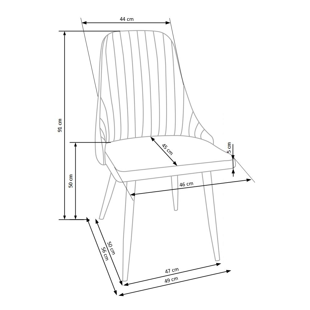Židle je vybavena stabilní konstrukcí v podobě čtyř nohou, které jsou vyrobeny z pevného kovu. Sedák i opěrák jsou čalouněny příjemnou látkou a zajistí tak pohodlné sezení.