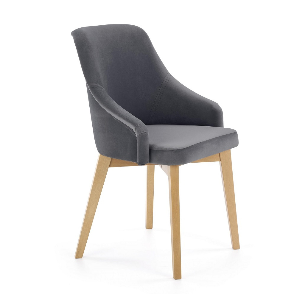 Židle je vybavena stabilní konstrukcí v podobě čtyř dřevěných nohou, které jsou vyrobeny v barvě medového dubu. Sedák i opěrák jsou čalouněny příjemnou sametovou látkou, která zajistí vždy pohodlné sezení.