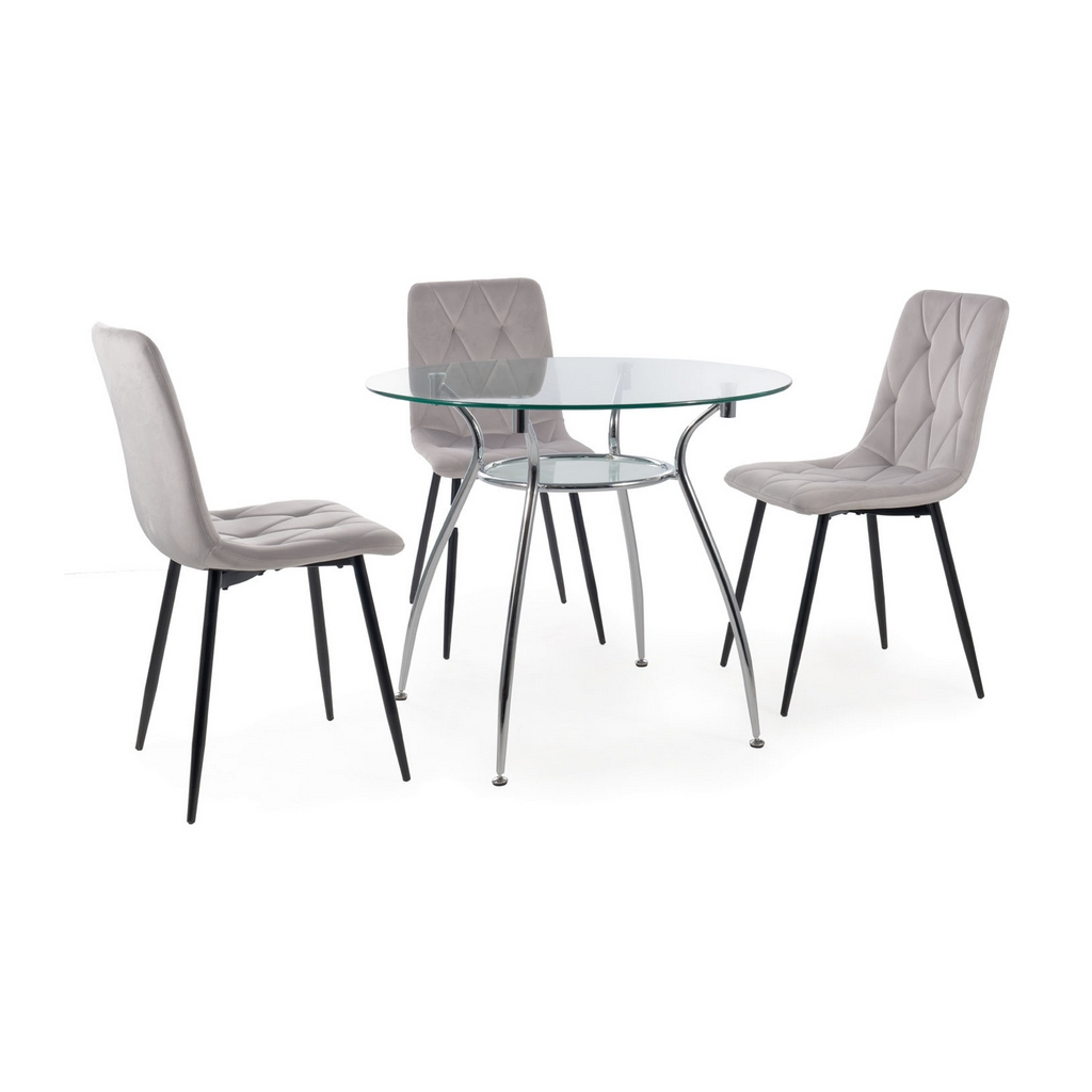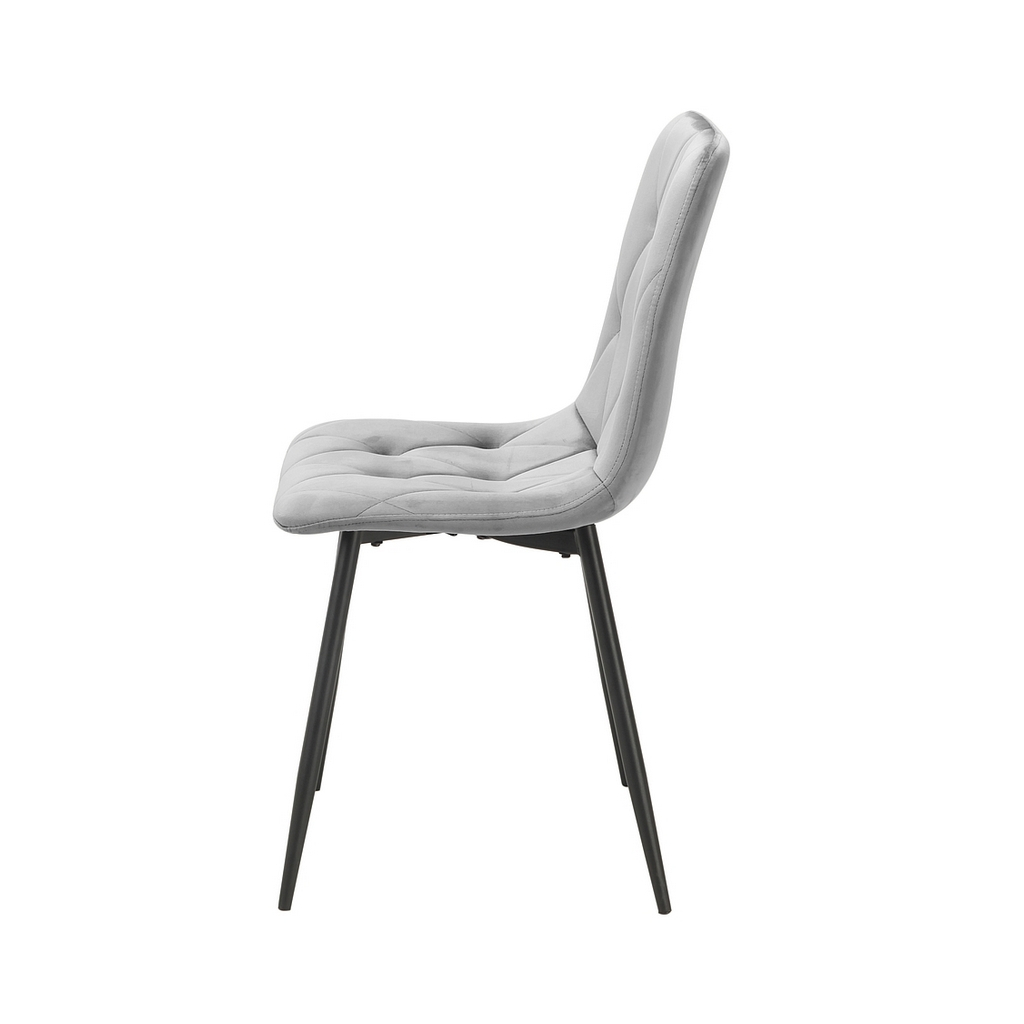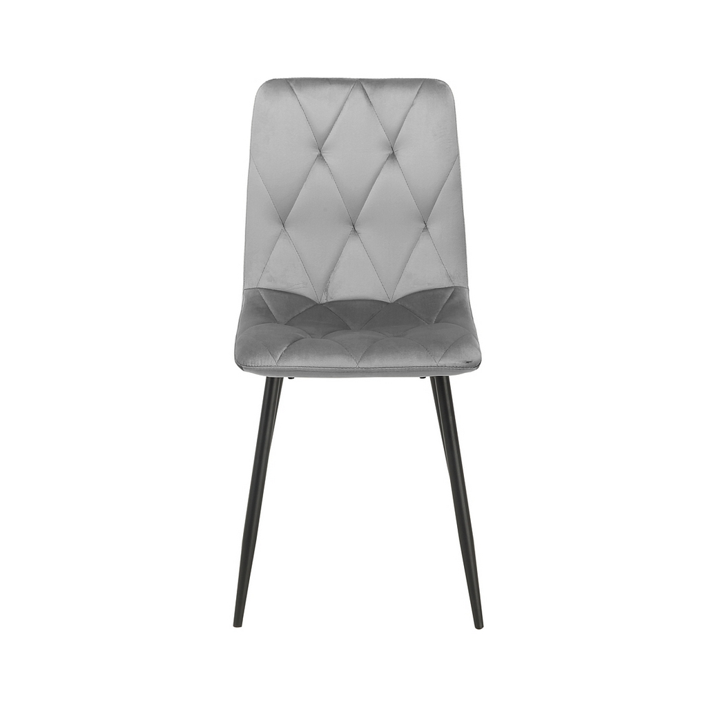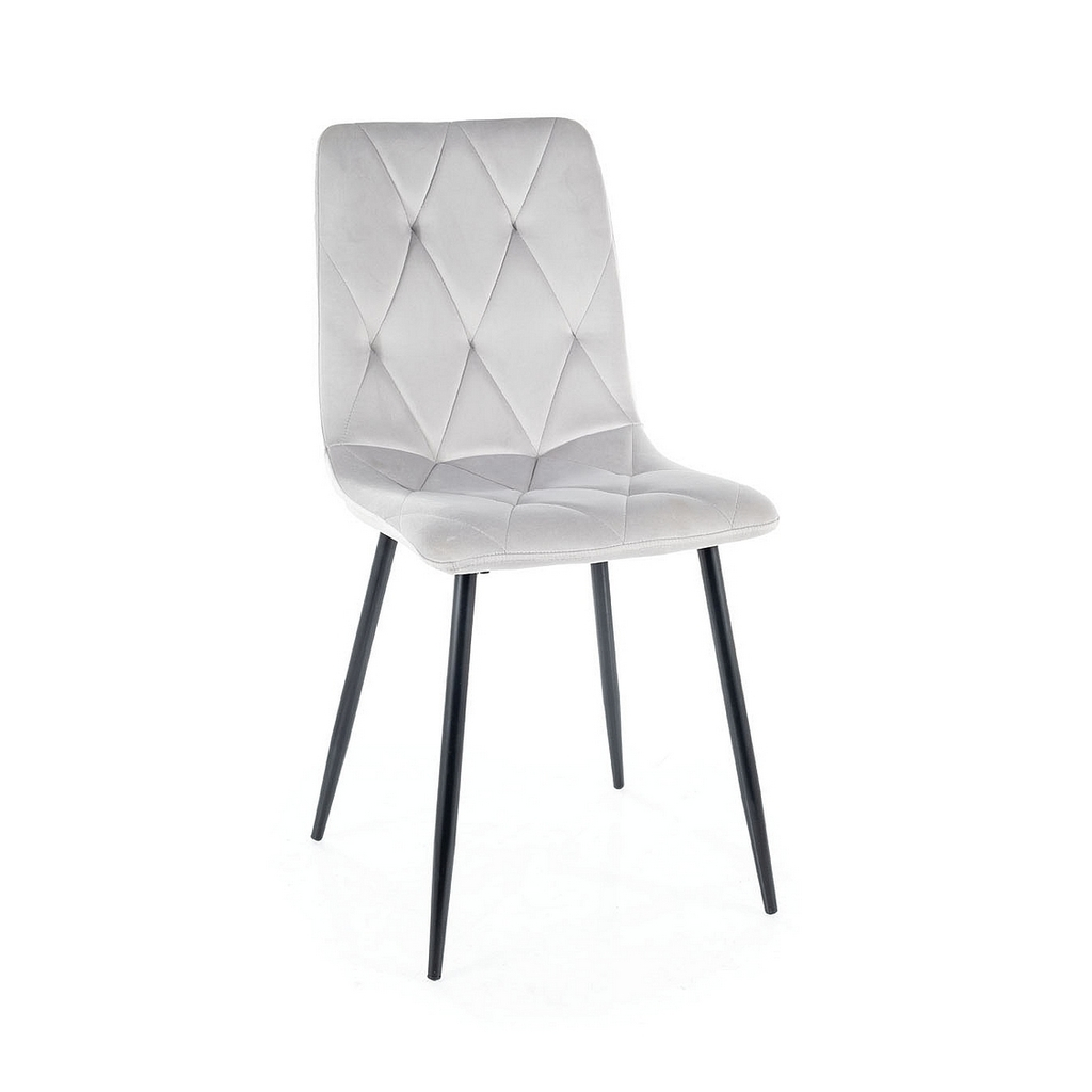 Úzké nohy z kovu dodávají židli stabilitu, zároveň ale působí vzdušně. O efektní vzhled a pohodlí se stará polstrování a čalounění ze sametově hebké látky. Ta zaujme moderním prošíváním do kosočtverců.