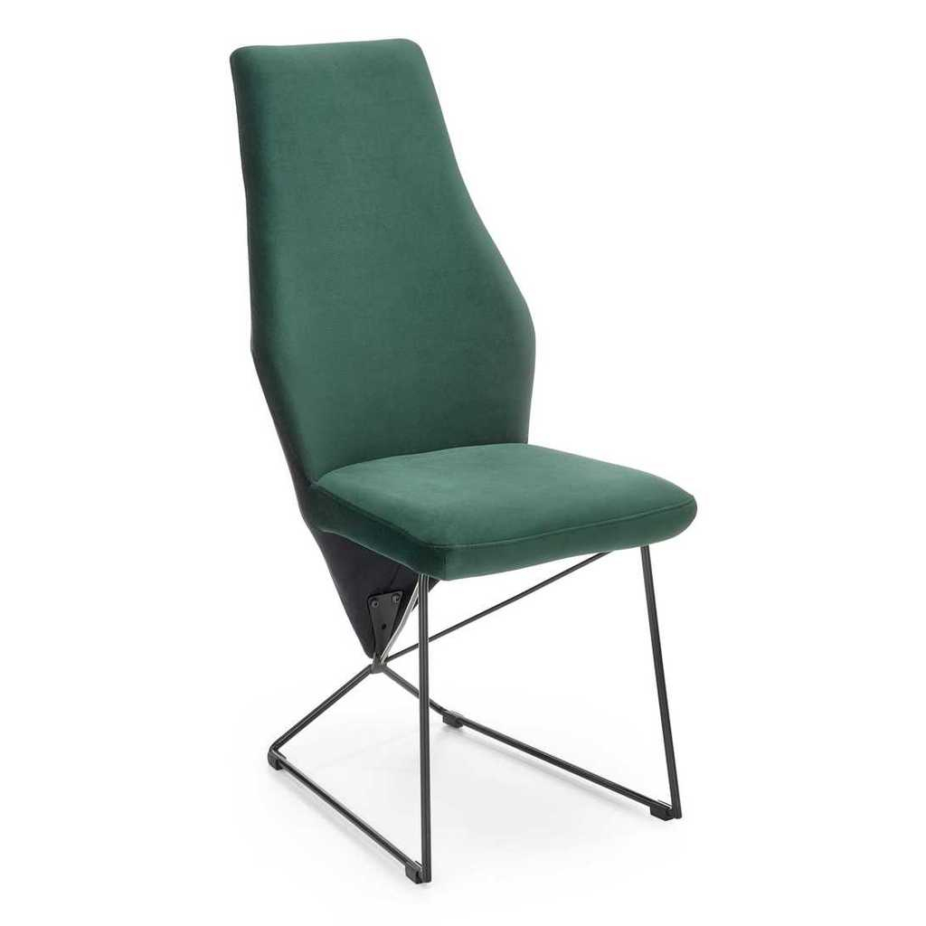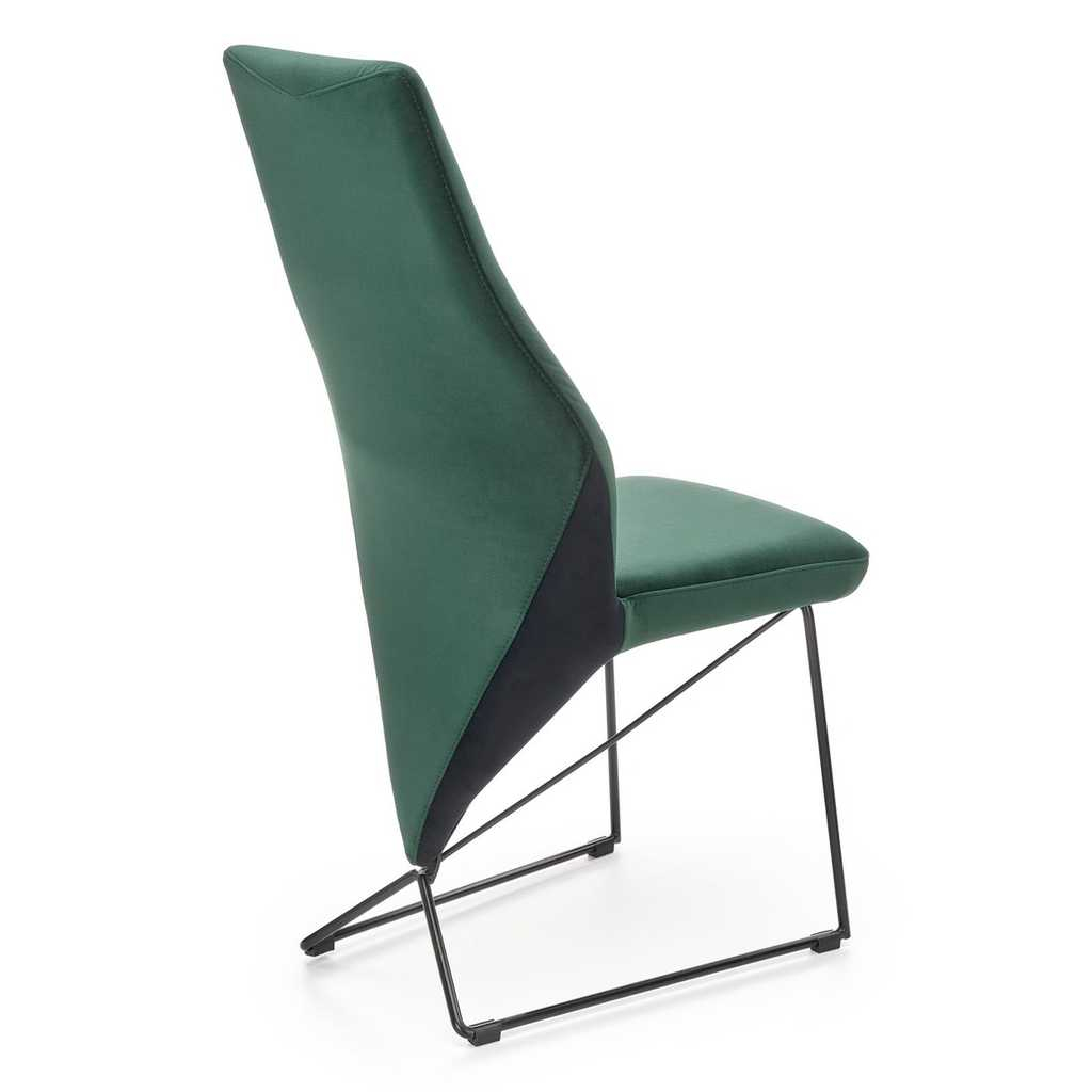 Štíhlý design najdete i u sedáku s opěradlem. Ty jsou potažené sametovou látkou, která židli dodá na prestiži i pohodlí. Unikátním prvkem této židle je spojení 2 barev na potahu a "cíp" v zadní části opěradla. Ten v sobě chytře schová část kostry, díky které je židle překvapivě robustní.