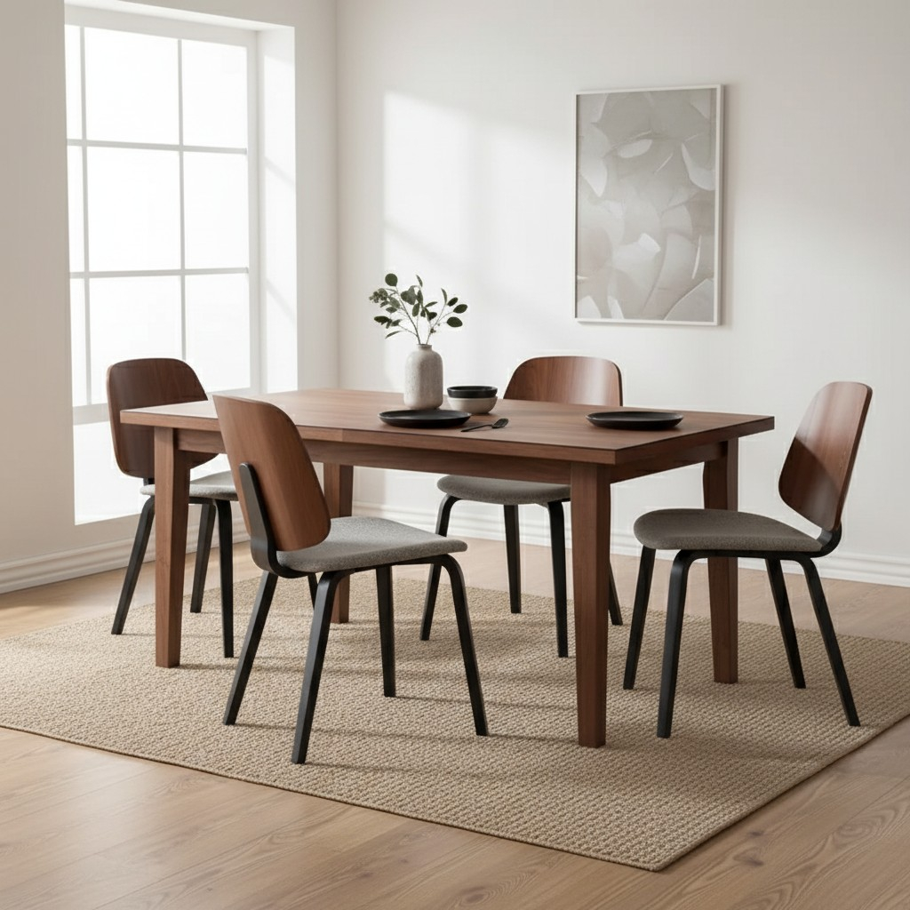 Podnož židle je z masivního dřeva v černé barvě. S tou se hezky doplňuje opěradlo z ohýbané překližky v dezénu ořechu.