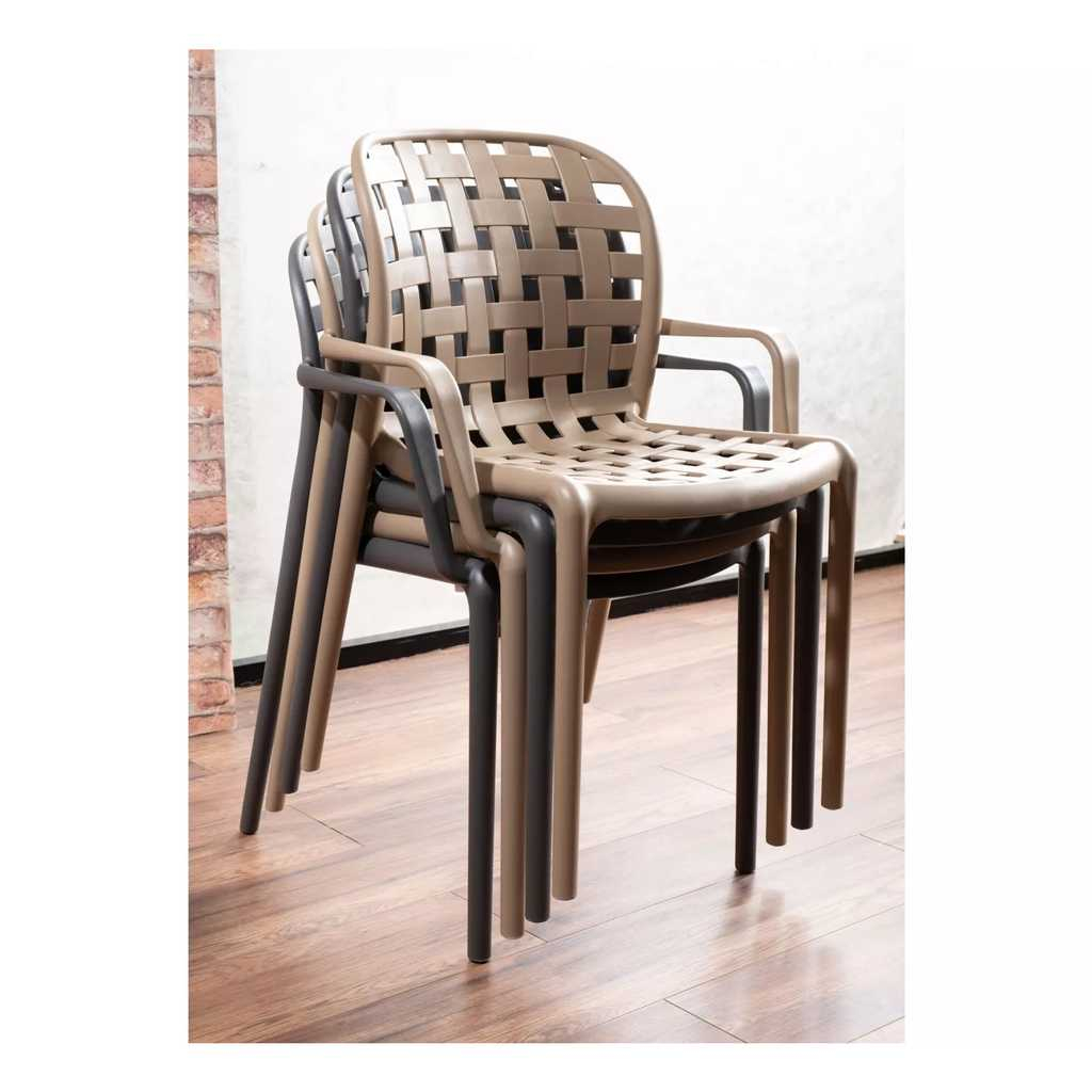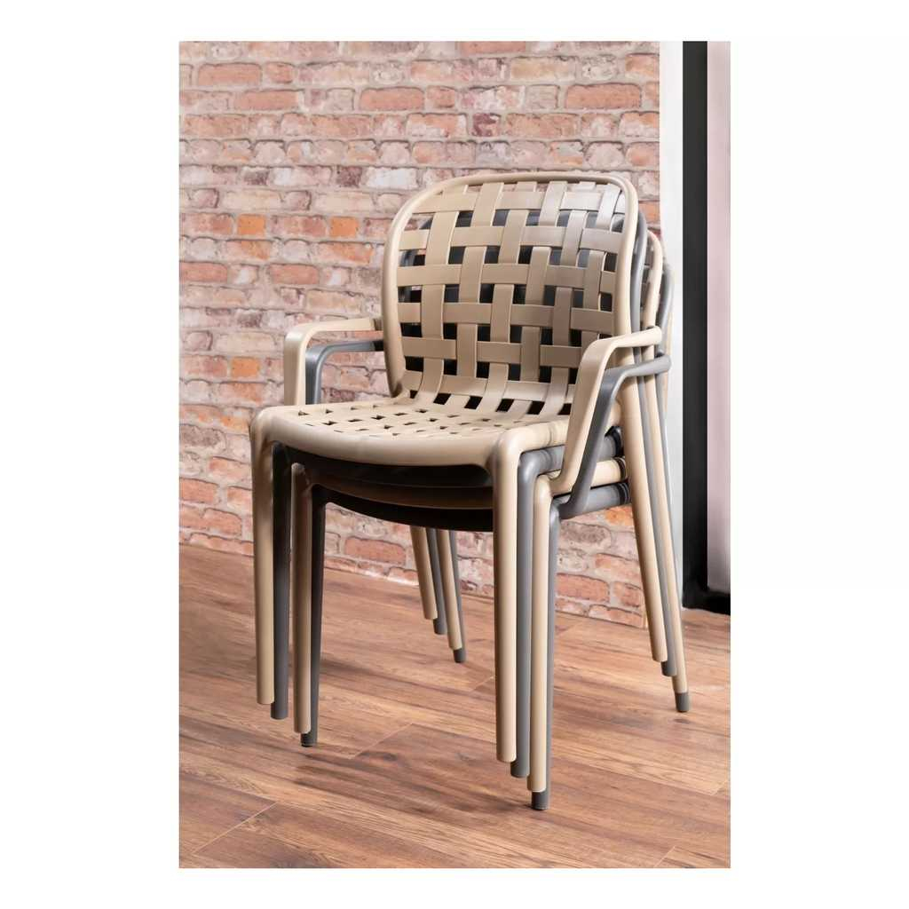Celá konstrukce je totiž z plastu – konkrétně polypropylenu. Tím pádem odpadají starosti s údržbou a židle odolá běžným povětrnostním vlivům.