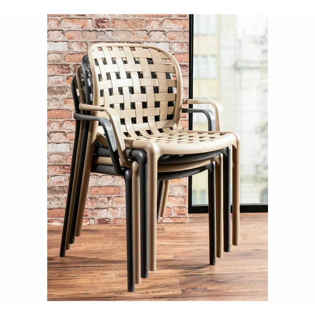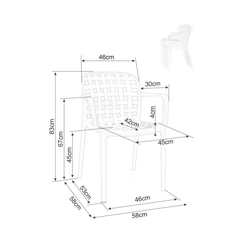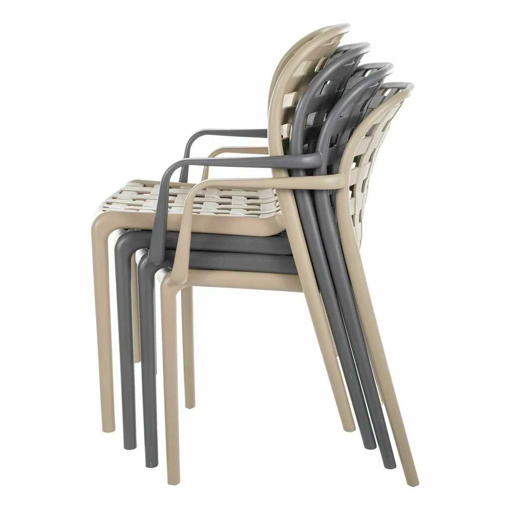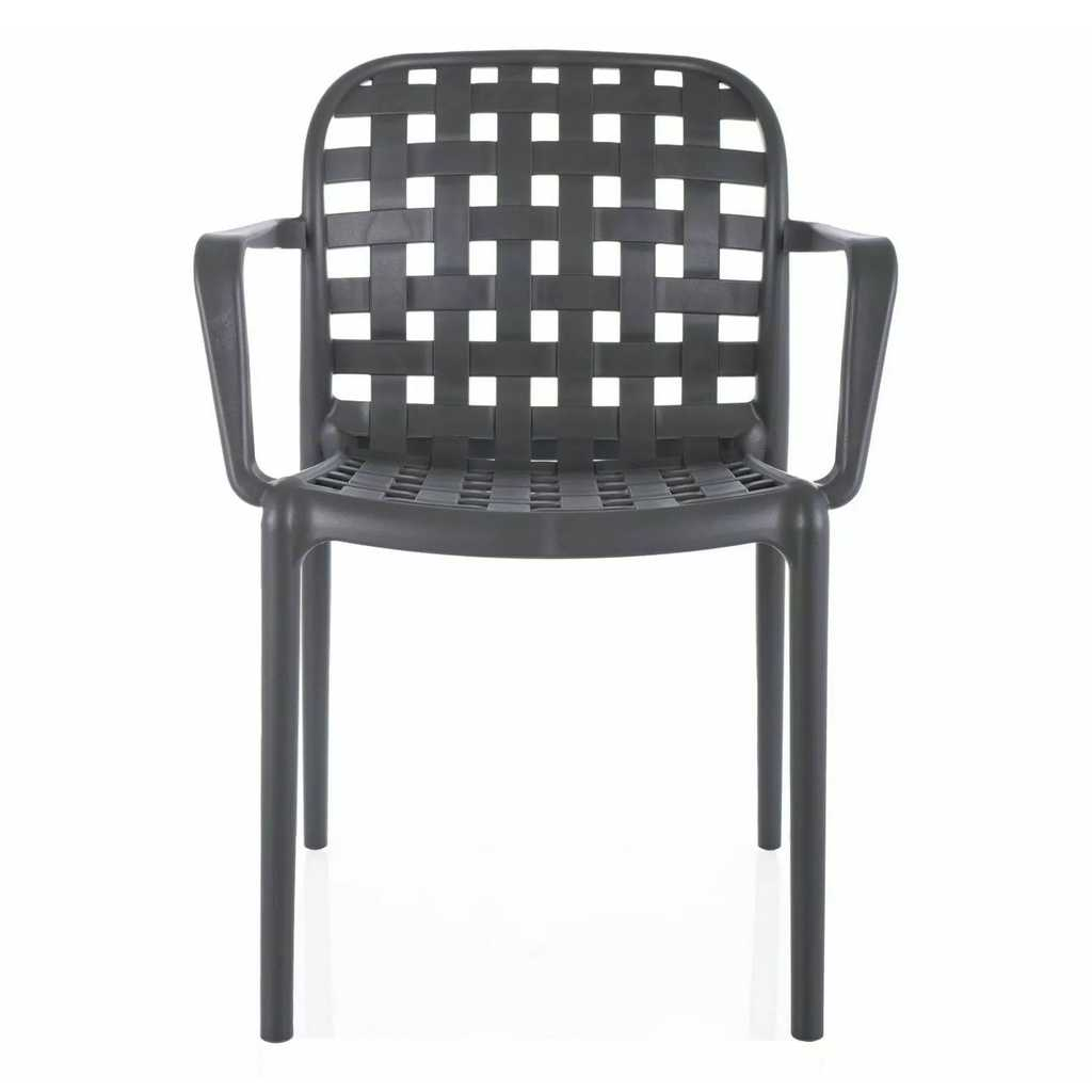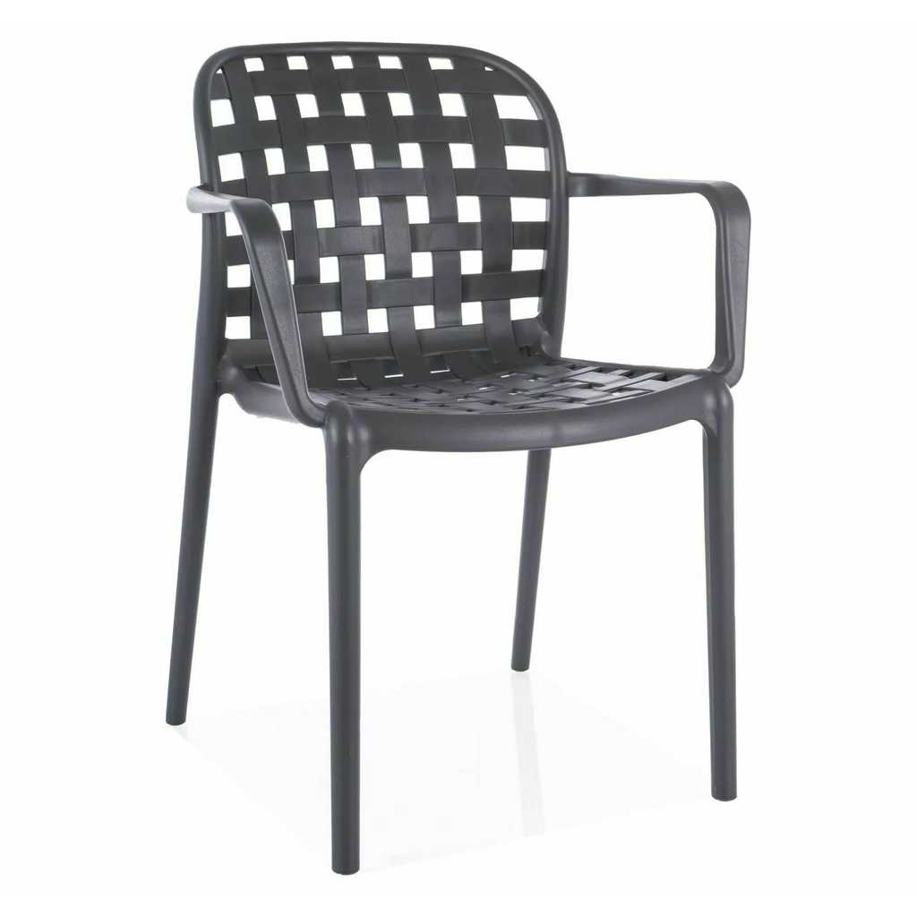 Celá konstrukce je totiž z plastu – konkrétně polypropylenu. Tím pádem odpadají starosti s údržbou a židle odolá běžným povětrnostním vlivům. Tato varianta je navíc vybavená područkami, které zvýší komfort při sezení.