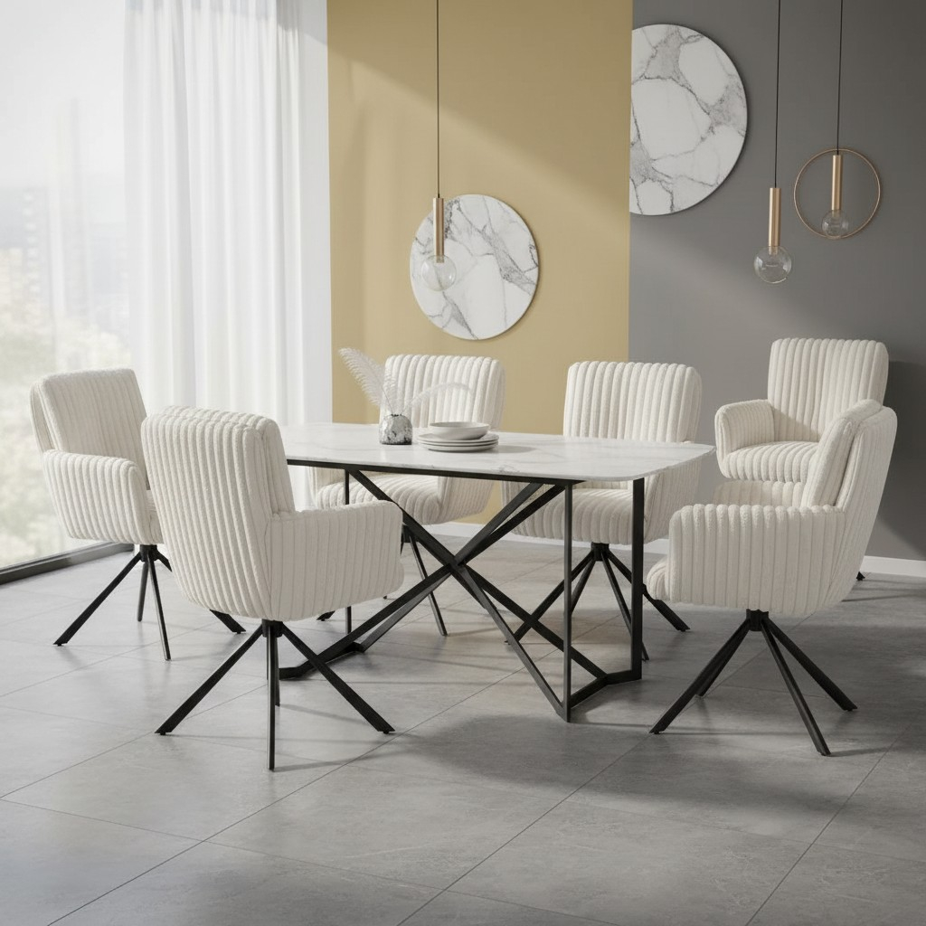 Jídelní židle Zora je skvělou volbou pro ty, kdo hledají kvalitní a pohodlné sezení s moderním designem a spolehlivou konstrukcí. Díky kombinaci látkového sedáku a kovové podnože je vhodná jak do domácích, tak i komerčních prostor.