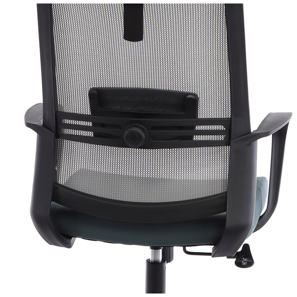 Opěrák židle je potažen síťovinou, která je pro vás ideální volbou, pokud hledáte vzdušný a prodyšný materiál.
