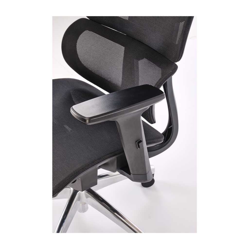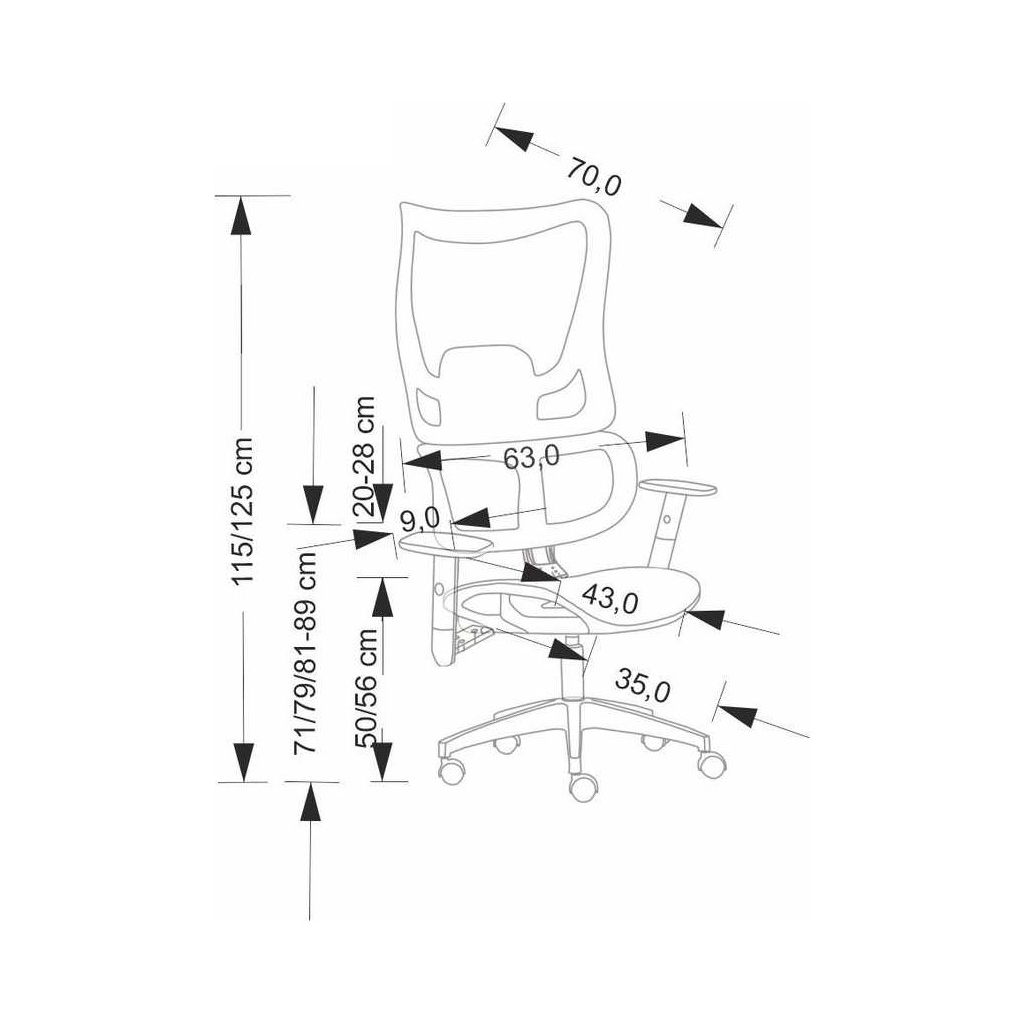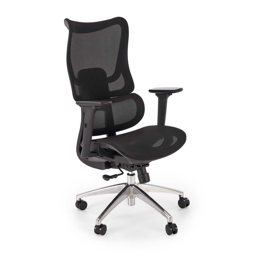 Židle je vybavena synchronní mechanikou s možností nastavení výšky sedu a výškově nastavitelným opěrákem zad, což umožňuje individuální nastavení podle vašich potřeb. Nastavitelné područky zaručují komfortní opření rukou a podporu při práci. Kovový kříž a univerzální kolečka poskytují stabilitu a snadnou mobilitu.