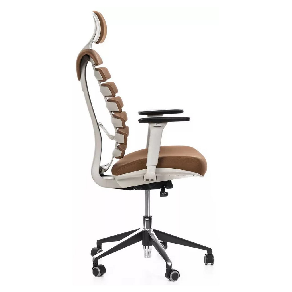 Kromě synchronní mechaniky se chlubí např. 3D nastavitelnými područkami, hloubkově posuvným sedákem nebo regulovatelnou bederní výztuhou. Díky této kombinaci prvků na židli bez úpění vydržíte sedět klidně i víc než 8 hodin denně.
