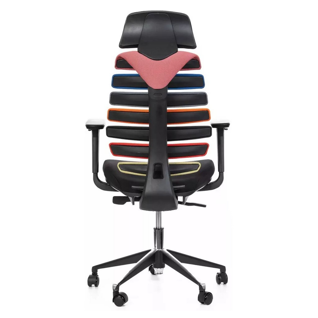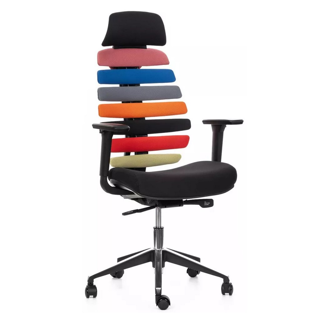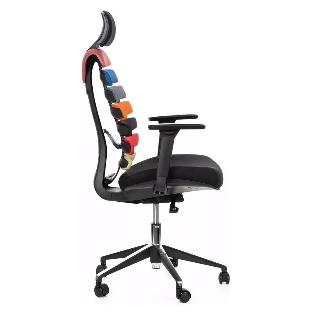 Kromě synchronní mechaniky se chlubí např. 3D nastavitelnými područkami, hloubkově posuvným sedákem nebo regulovatelnou bederní výztuhou. Díky této kombinaci prvků na židli bez úpění vydržíte sedět klidně i víc než 8 hodin denně.