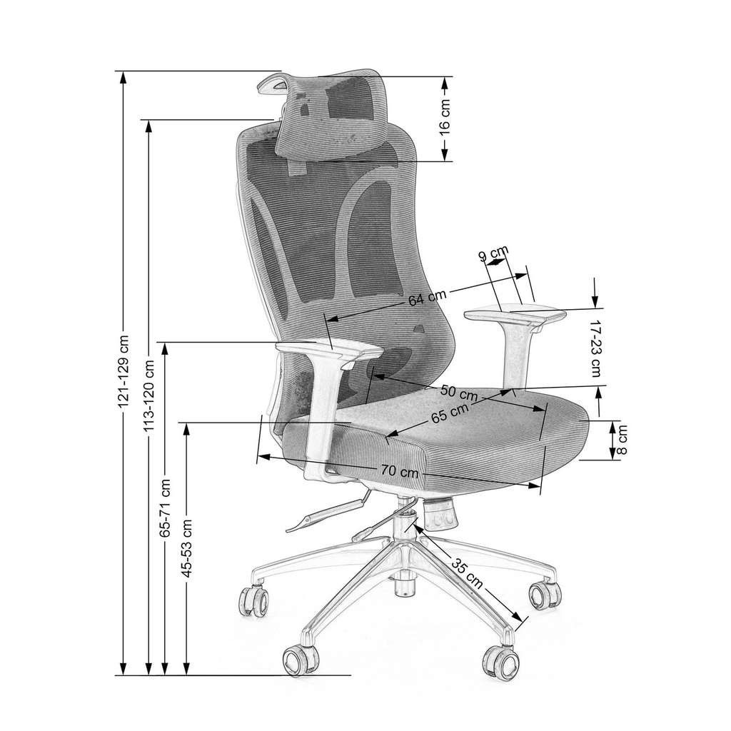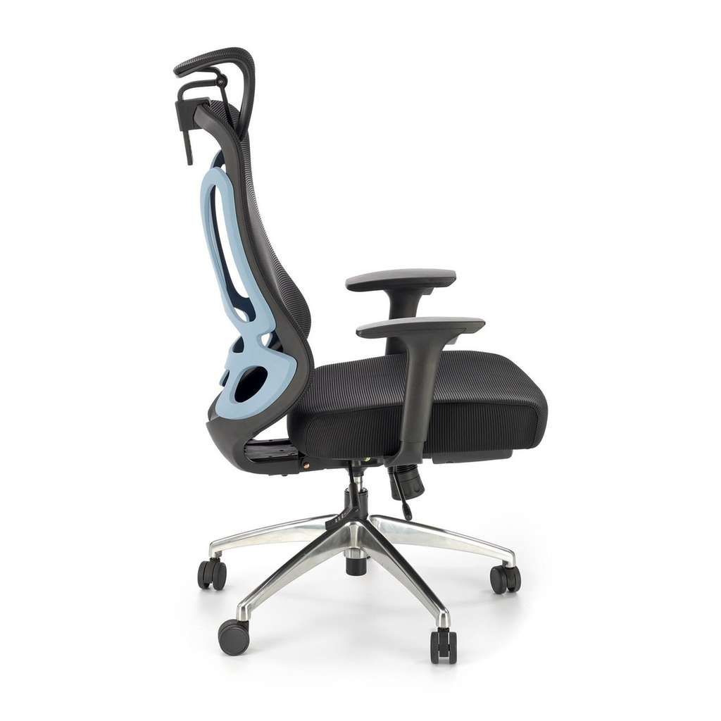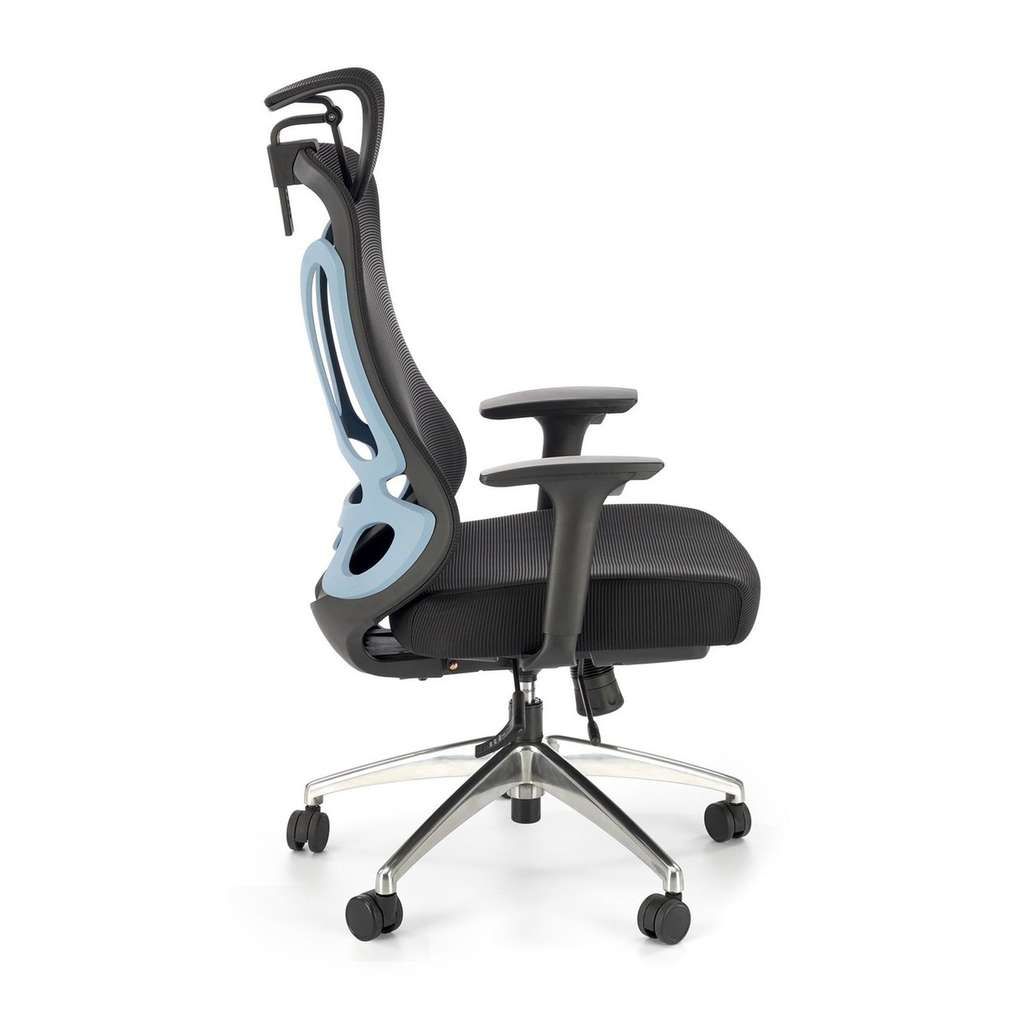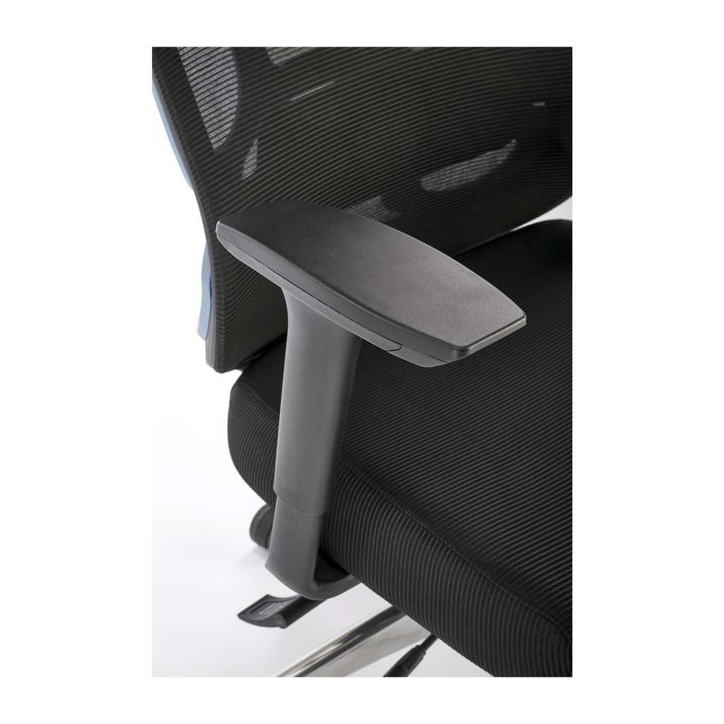 Židle disponuje nastavitelnými područky, které pomáhají odlehčit ramena při práci, a nastavitelnou bederní opěrkou, která podporuje správné zakřivení páteře. Komfort zvyšuje i nastavitelná opěrka hlavy a kvalitní potah z kombinace látky a síťoviny, která zajišťuje dostatečnou prodyšnost během celého dne.