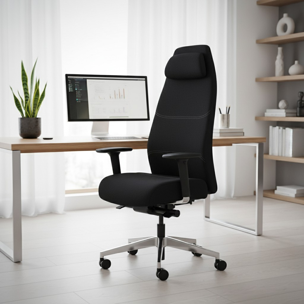 Kancelářská židle Kilter si vás získá svou širokou ergonomickou výbavou a decentním vzhledem. Díky jejím rozměrům ji můžeme doporučit i vyšším uživatelům (200 cm není žádný problém) a pestré možnosti nastavení z ní dělají skvělého společníka pro zdravé sezení i déle než 8 hodin denně.