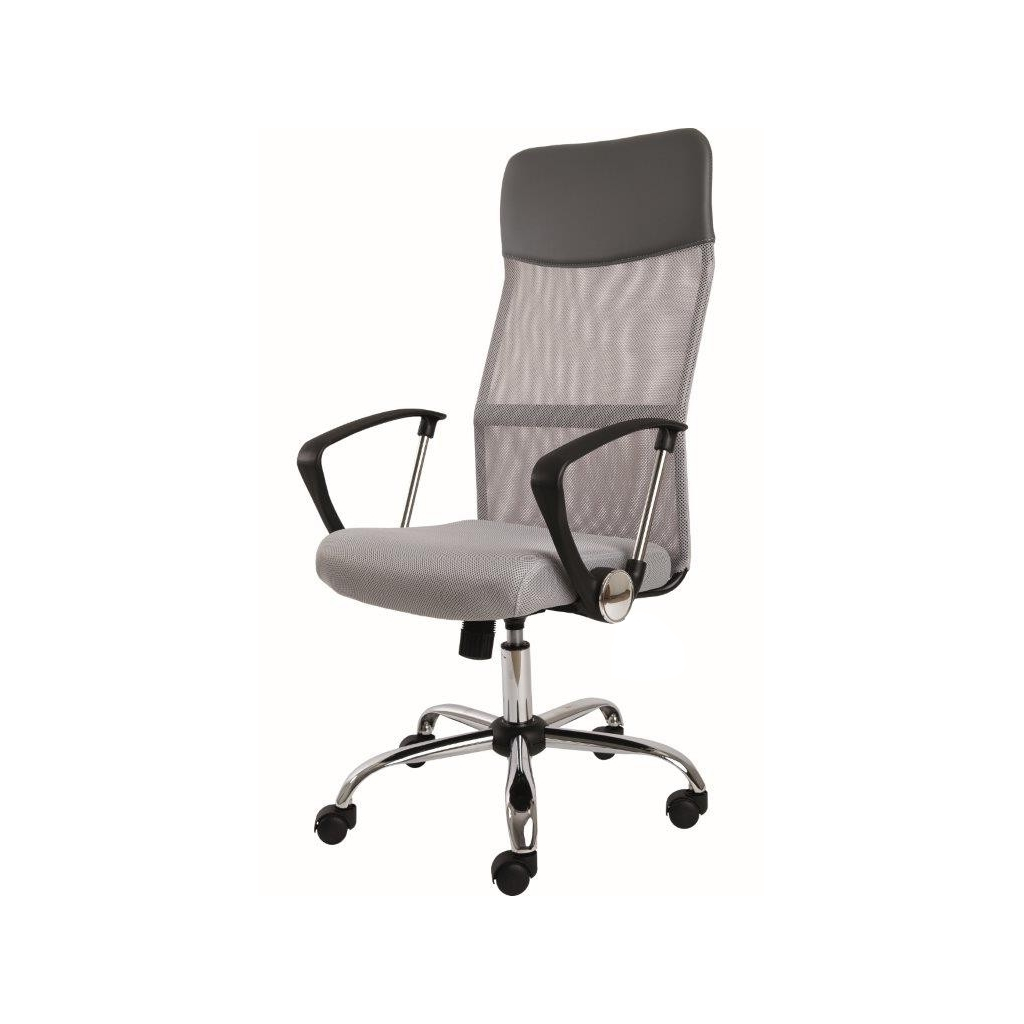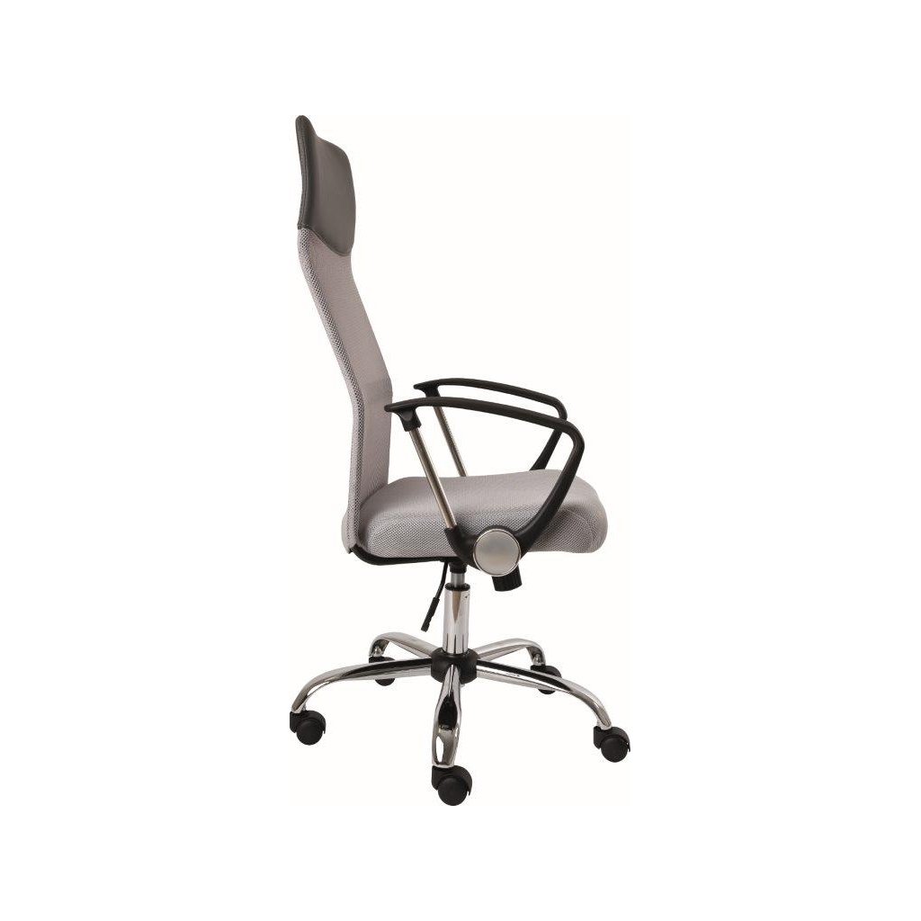 Otočná židle Medea je čalouněná 3 typy potahů. Opěrák zad je potažený vzdušnou síťovinou, kontaktní část v oblasti krční páteře moderní eko kůží a sedák pevnou membránovou látkou.