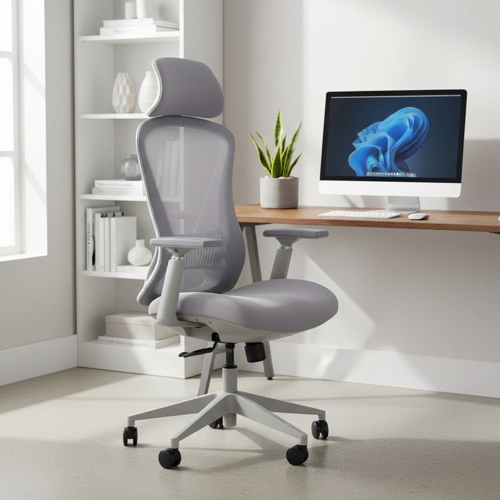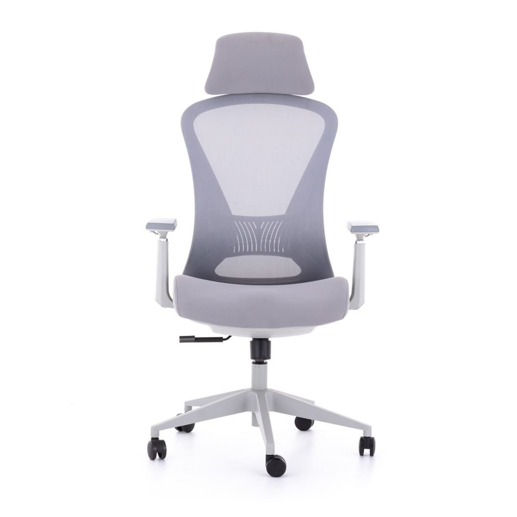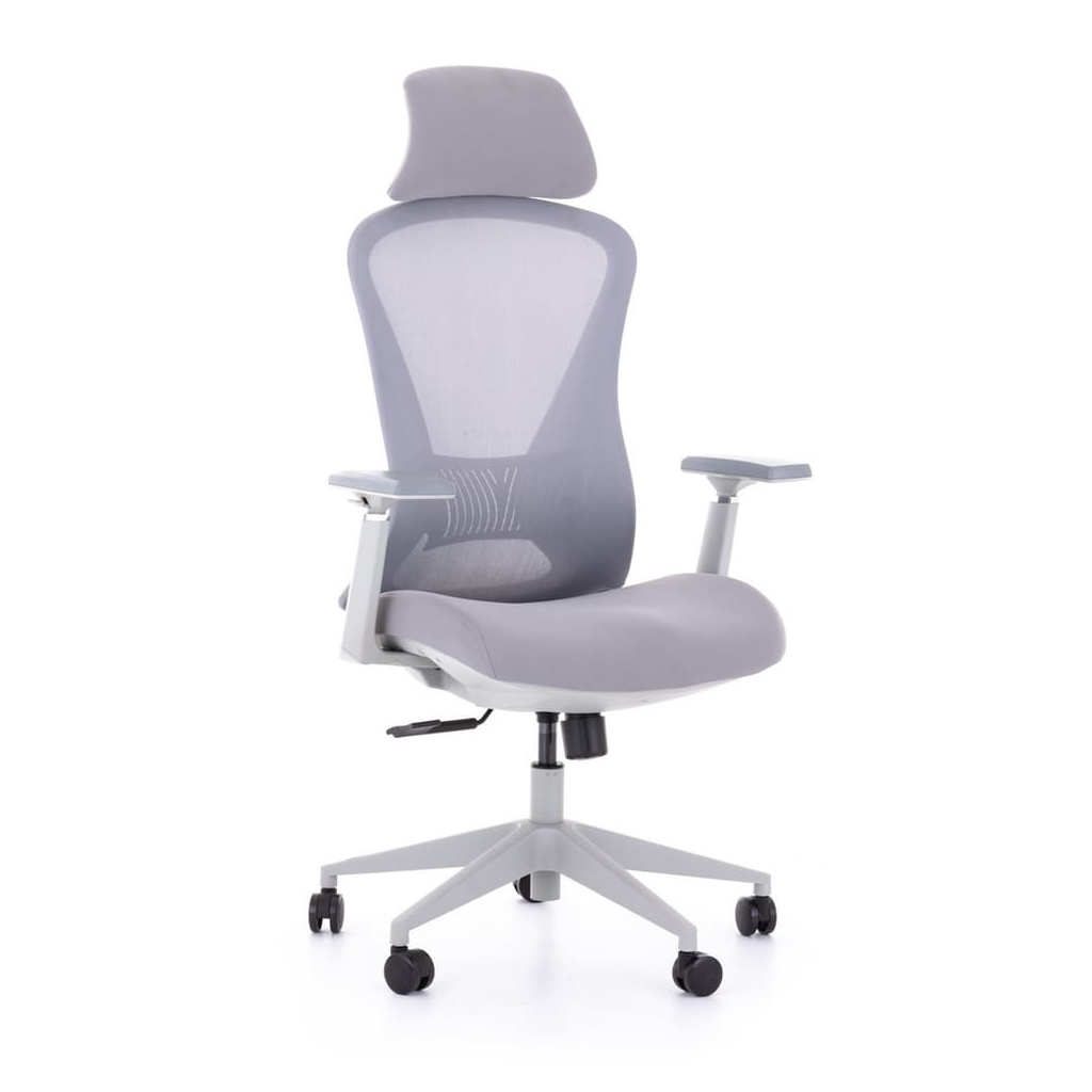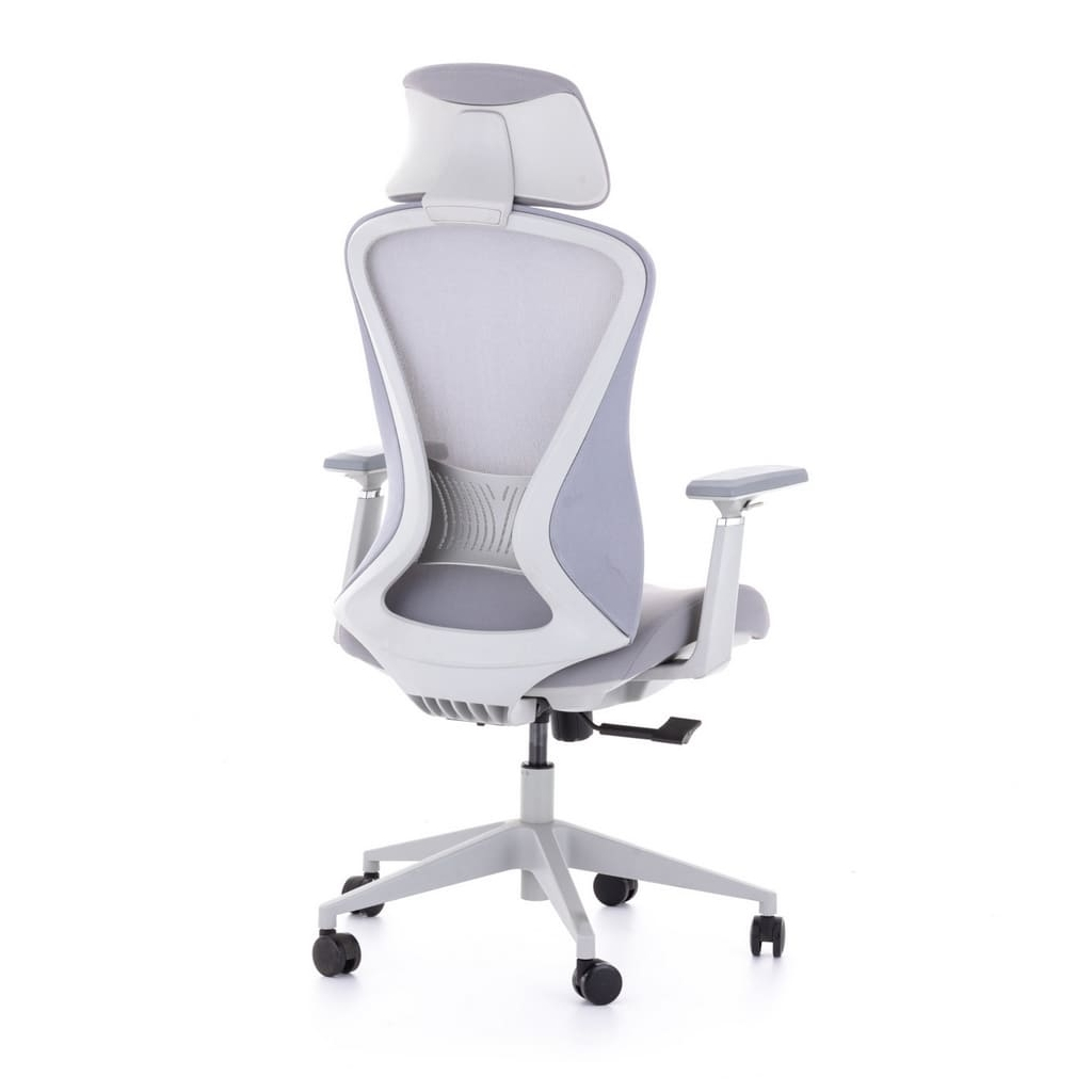 Sedák a opěrka hlavy otočné židle Renato II mají potah z pevné šedé membránové látky, u které nemusíte mít obavy z oděru. Zato zádový opěrák je potažený vzdušnou síťovinou.