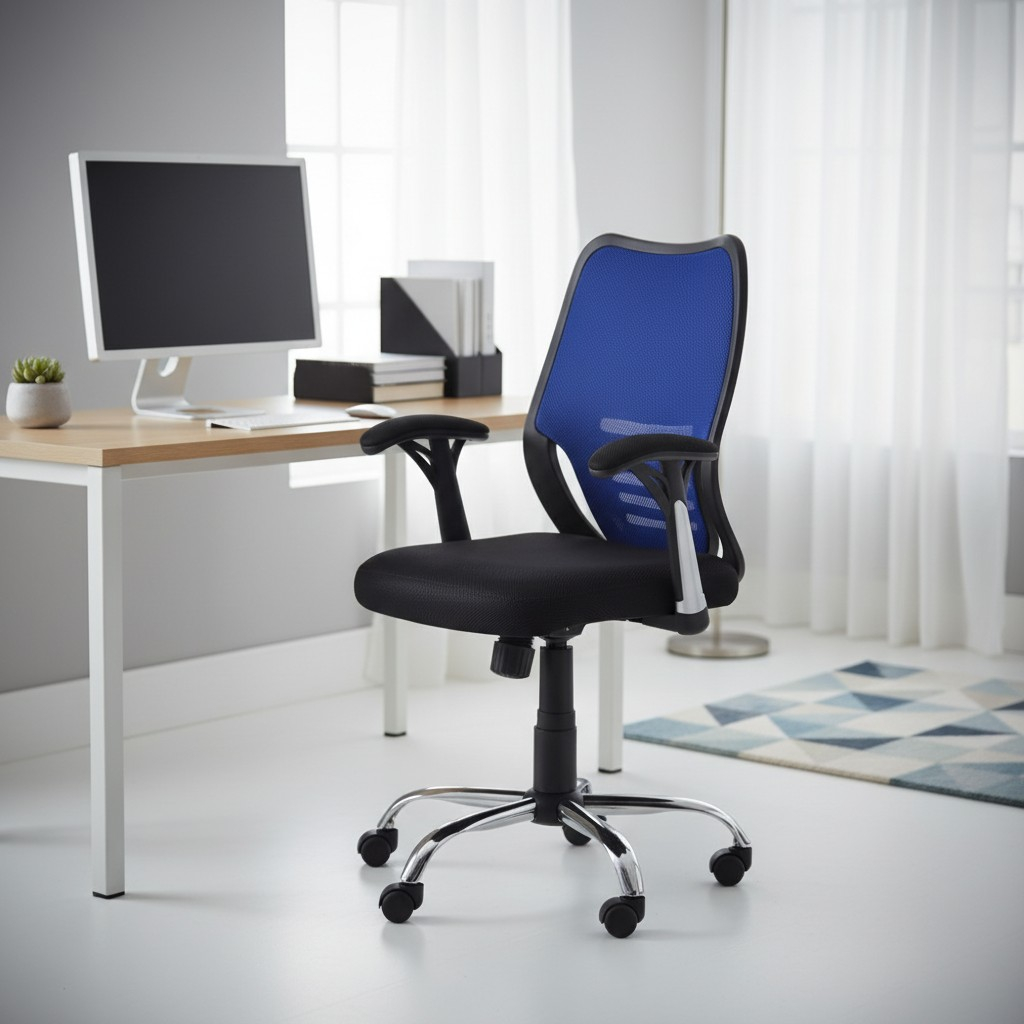 Opěrák židle je potažen barevnou síťovinou, která je pro vás ideální volbou, pokud hledáte vzdušný a prodyšný materiál.