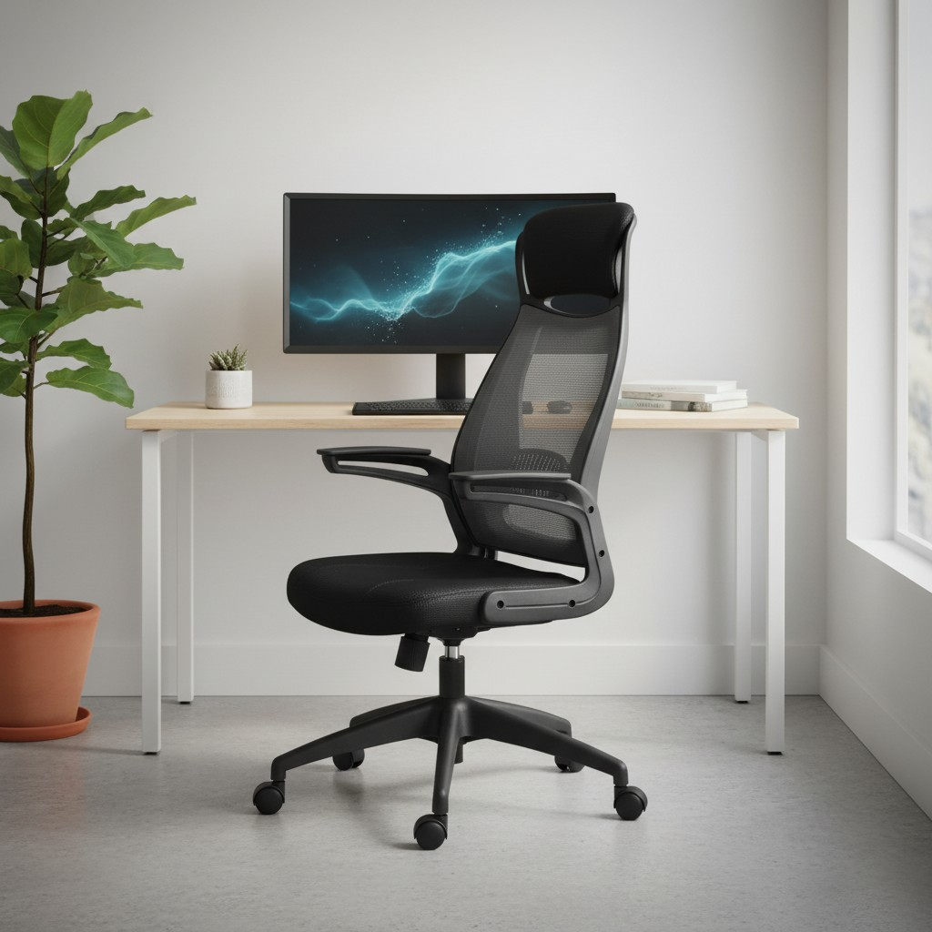 Komfort při sezení vám zajistí pevná hlavová opěrka, vzdušný opěrák potažený síťovinou, ergonomicky tvarovaný sedák, pevná bederní opěrka a područky pro vaše lokty a předloktí.