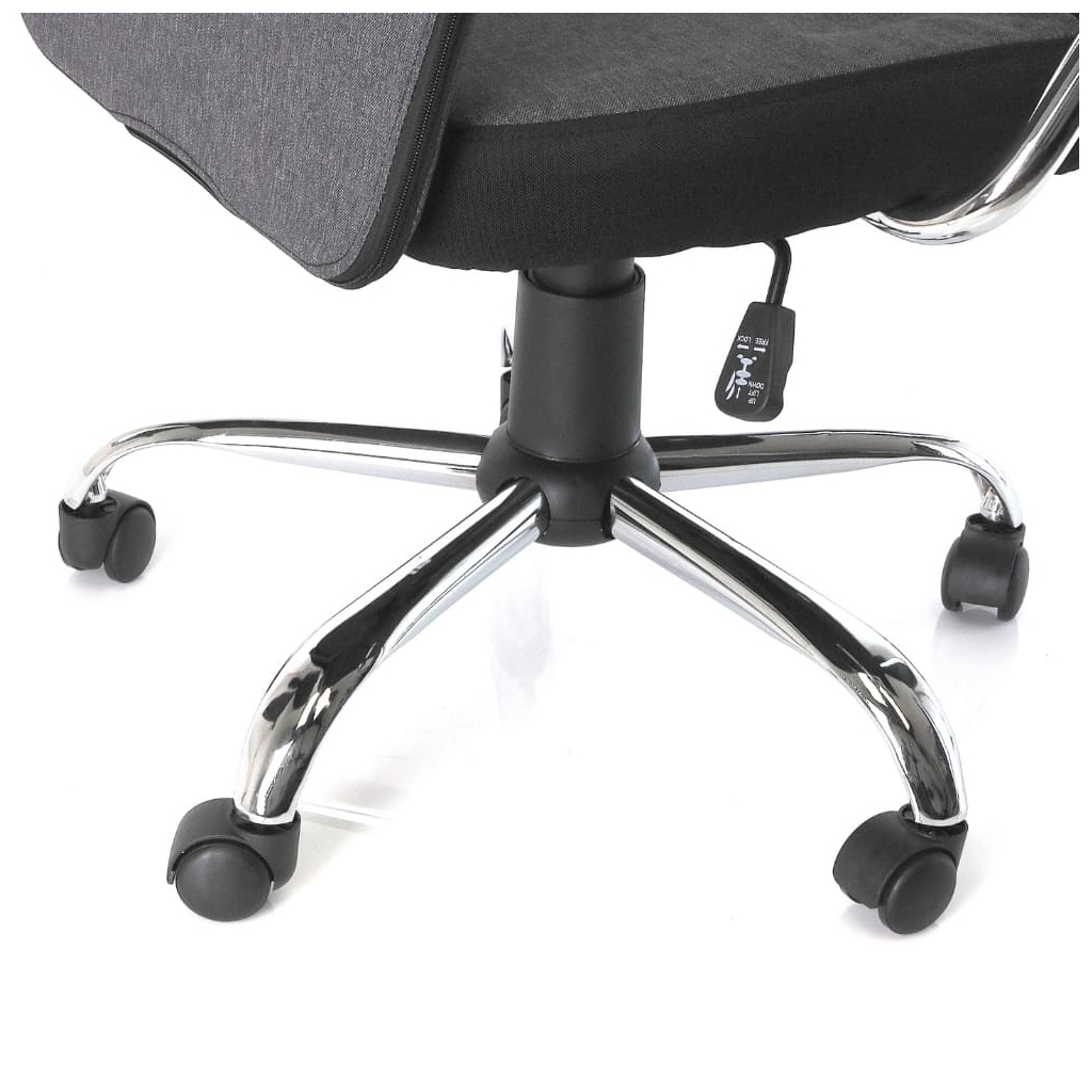 Základem kancelářské židle Sorela je kovový kříž s pochromovaným povrchem, plynový píst s nosností 120 kg a plastová kolečka, která jsou vhodná na měkké typy povrchů – třeba na koberce.