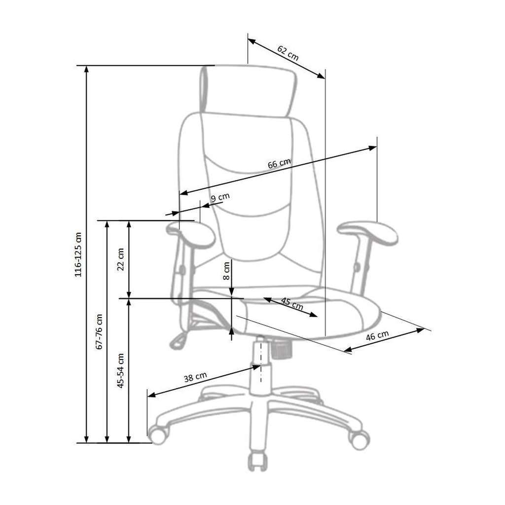 - Výškové nastavení celkové židle od 116 do 125 cm