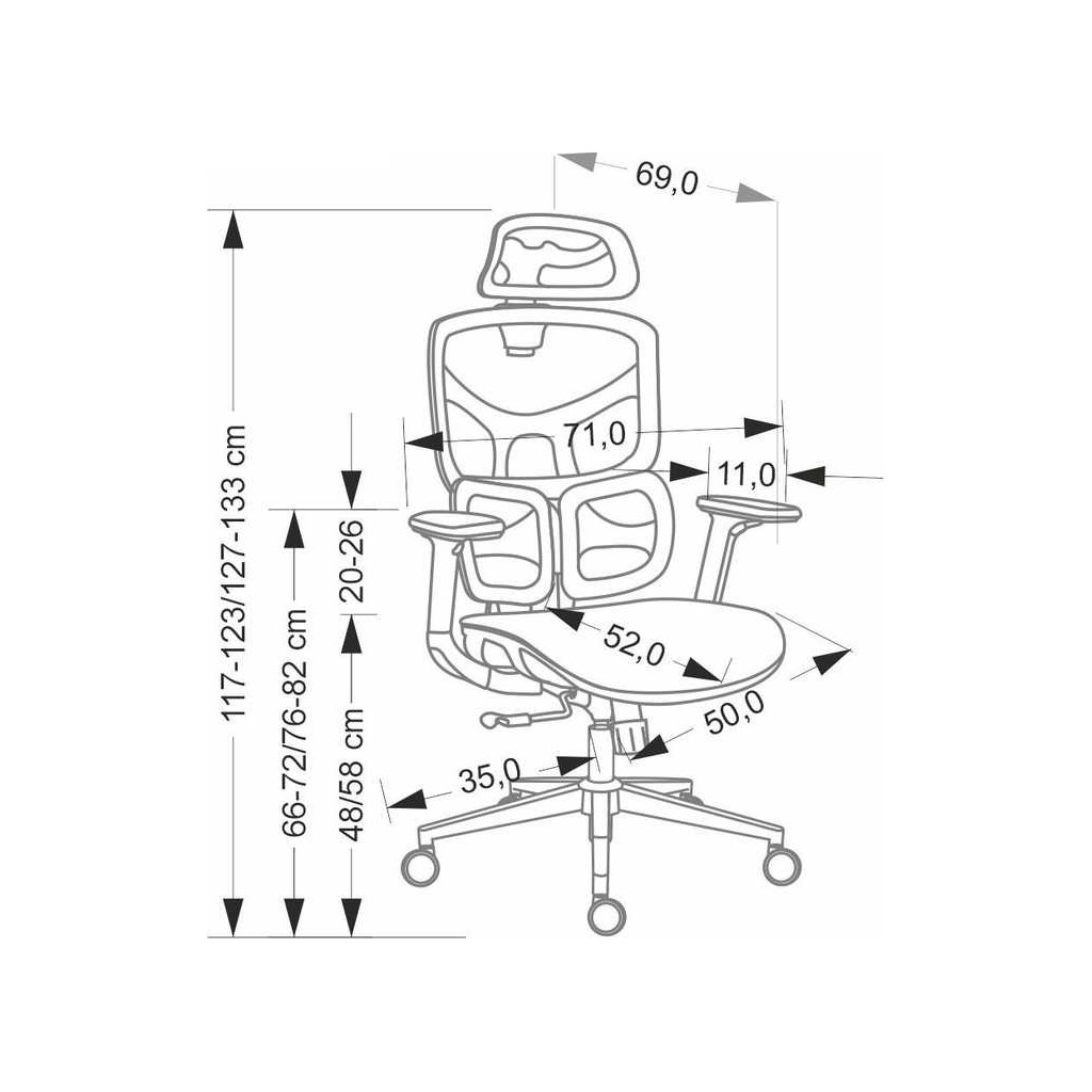 Díky houpací mechanice si můžete nastavit požadovaný úhel opěradla a područky jsou snadno nastavitelné podle vaší potřeby. Výšku sedáku lze upravit v rozmezí 48 až 58 cm, což umožňuje pohodlné přizpůsobení pracovní pozici. Židle je navržena pro maximální nosnost až 120 kg a je vybavena univerzálními kolečky, která zajistí snadný pohyb po kanceláři.