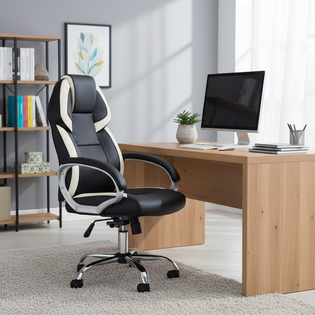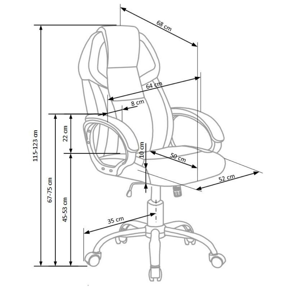 Toto křeslo v moderním designu dokáže ozdobit každou kancelář, domácí pracovnu i studentský pokoj. Křeslo je potažené eko kůží, která mu dodává sportovní vzhled. Její údržba je navíc snadná. Pro vaše pohodlí je křeslo vybavené houpacím mechanismem. Tento mechanismus umožňuje nastavit výšku sedadla a blokaci opěradla ve zvolené poloze. Díky němu snadno přeměníte židli na houpací nebo klasickou.