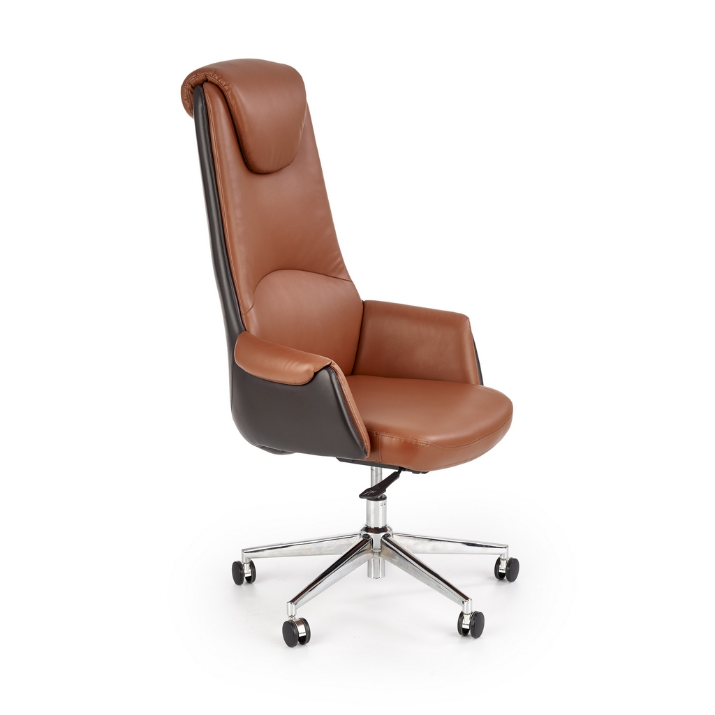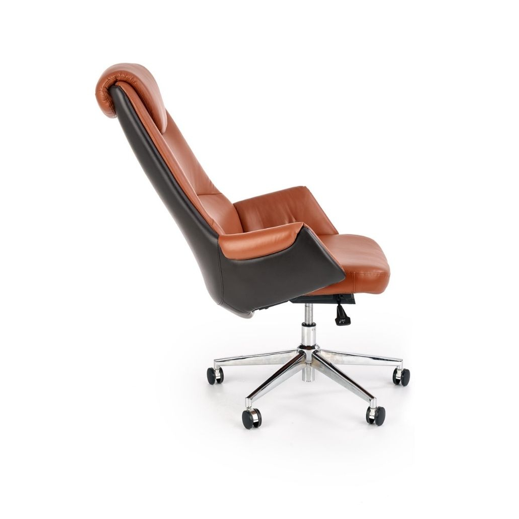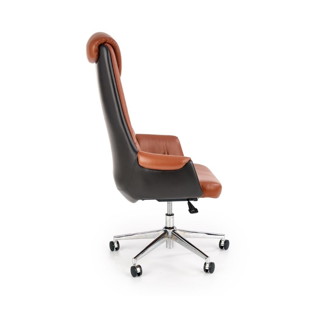 Materiál kancelářského křesla je tvořen z eko kůže, která umožňuje mít v kanceláři nebo pracovně luxusně vypadající křeslo, aniž by bylo třeba za něj utratit desetitisíce.