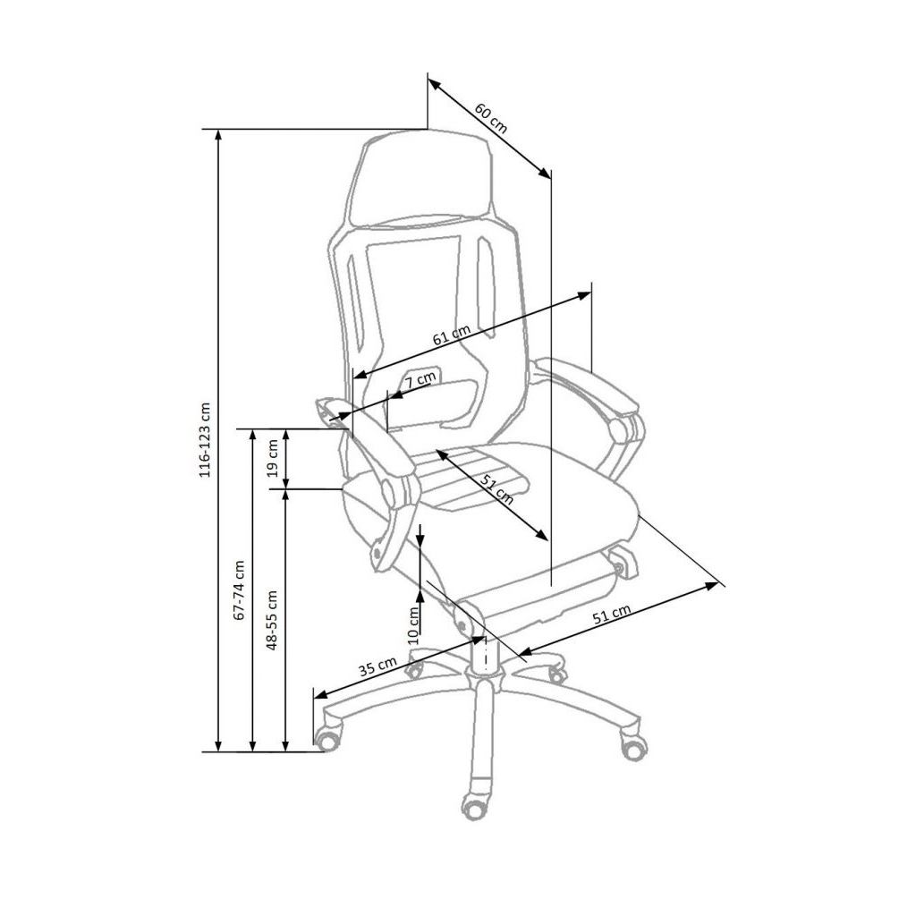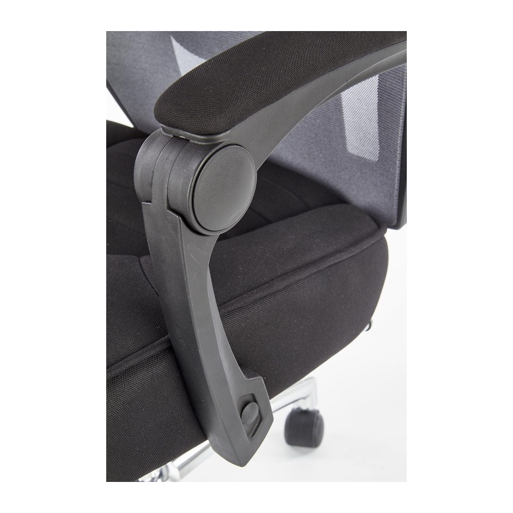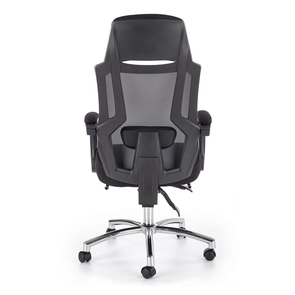 Opěrák židle je potažen síťovinou, která je pro vás ideální volbou, pokud hledáte vzdušný a prodyšný materiál.