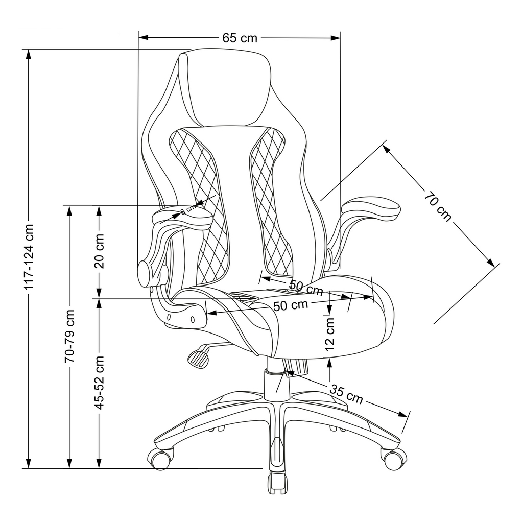 | Minimální výška područek od země: | 65 cm |