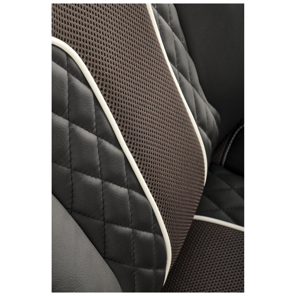 Nosný kříž i konstrukce područek jsou z černého plastu, který s tímto moderním potahem perfektně ladí.