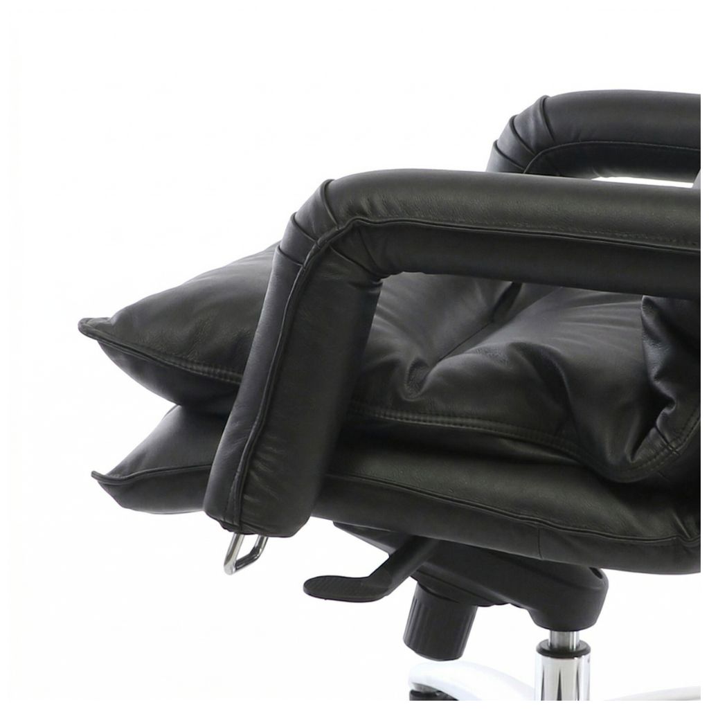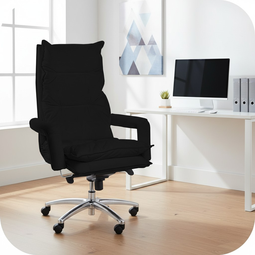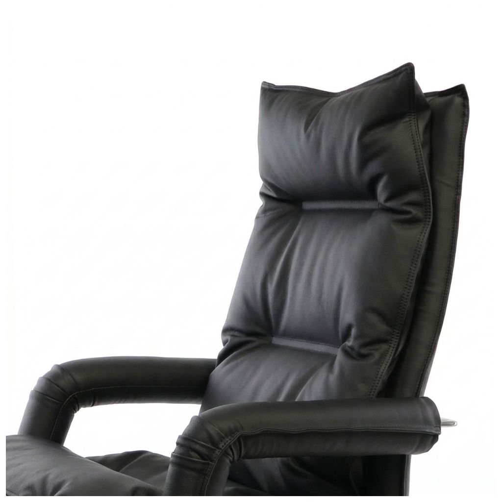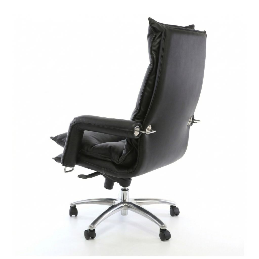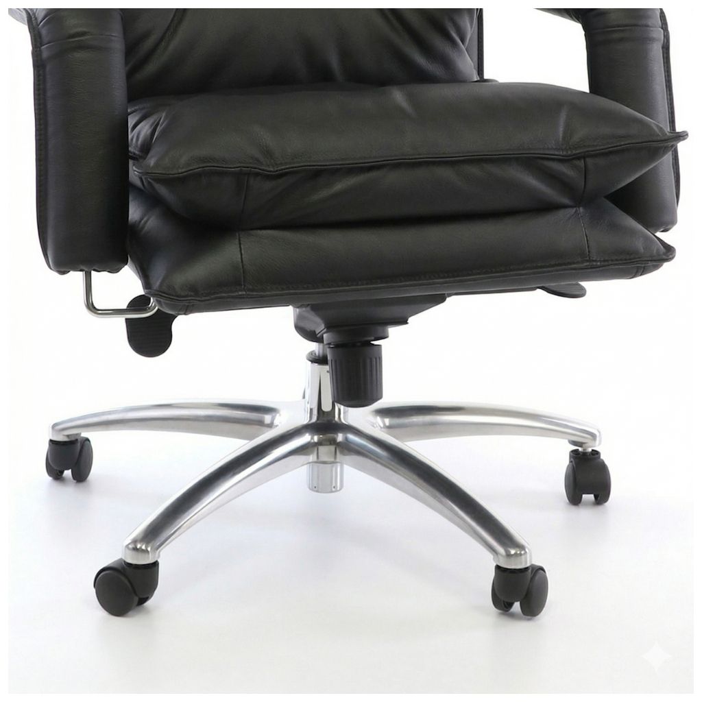 Pyšní se potahem z pravé kůže, houpací mechanikou, zvýšeným opěrákem zad a čalouněnými pevnými područkami. Zajistí vám skvělý komfort při sezení až 8 hodin denně.