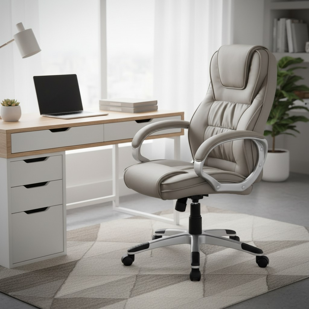 Na standardně vybaveném křeslu Leon můžete bez obav z bolesti či nepříjemného pocitu přesezení sedět až 8 hodin denně. Své uplatnění nalezne zejména v kancelářích, domácích pracovnách a studentských pokojích. Potažené je elegantní eko kůží ve třech barevných variantách - černé, šedé a béžové. Pohyb sedáku a opěráku má na starost houpací mechanismus, jehož tuhost si můžete sami regulovat. Kříž z tvrzeného plastu disponuje pěti kolečky, která jsou vhodná na měkké podlahy a koberce.