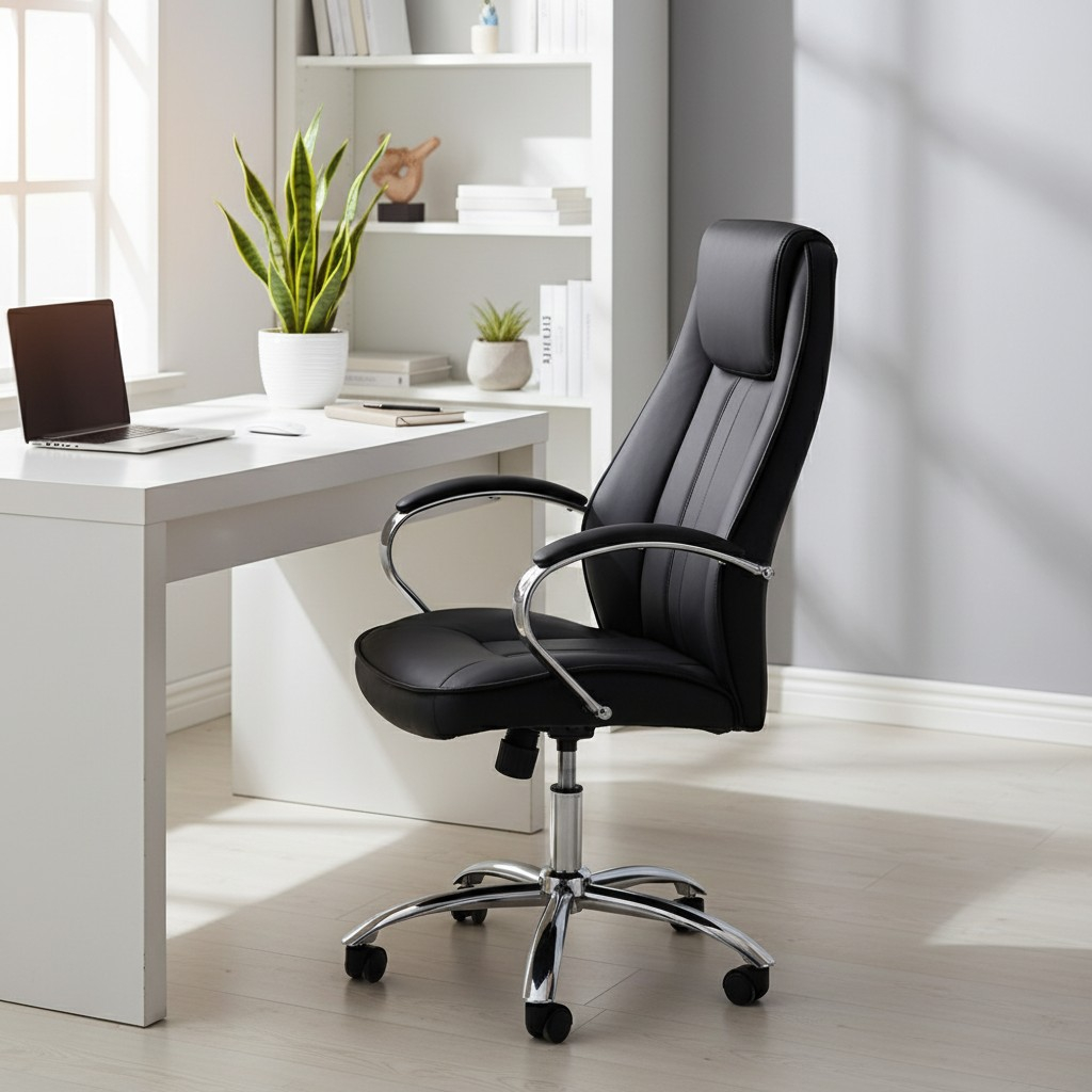 Vaše pohodlí bude mít na starost zvýšený opěrák zad s posílenou pěnovou výplní v oblasti hlavy a pevné područky s kovovou konstrukcí a čalouněním do eko kůže. O nastavení výšky křesla se postará plynový píst, který se ovládá pomocí páčky pod sedákem. Díky univerzálním kolečkům se křeslo hravě zvládne pohybovat po měkkých i tvrdých podlahách.