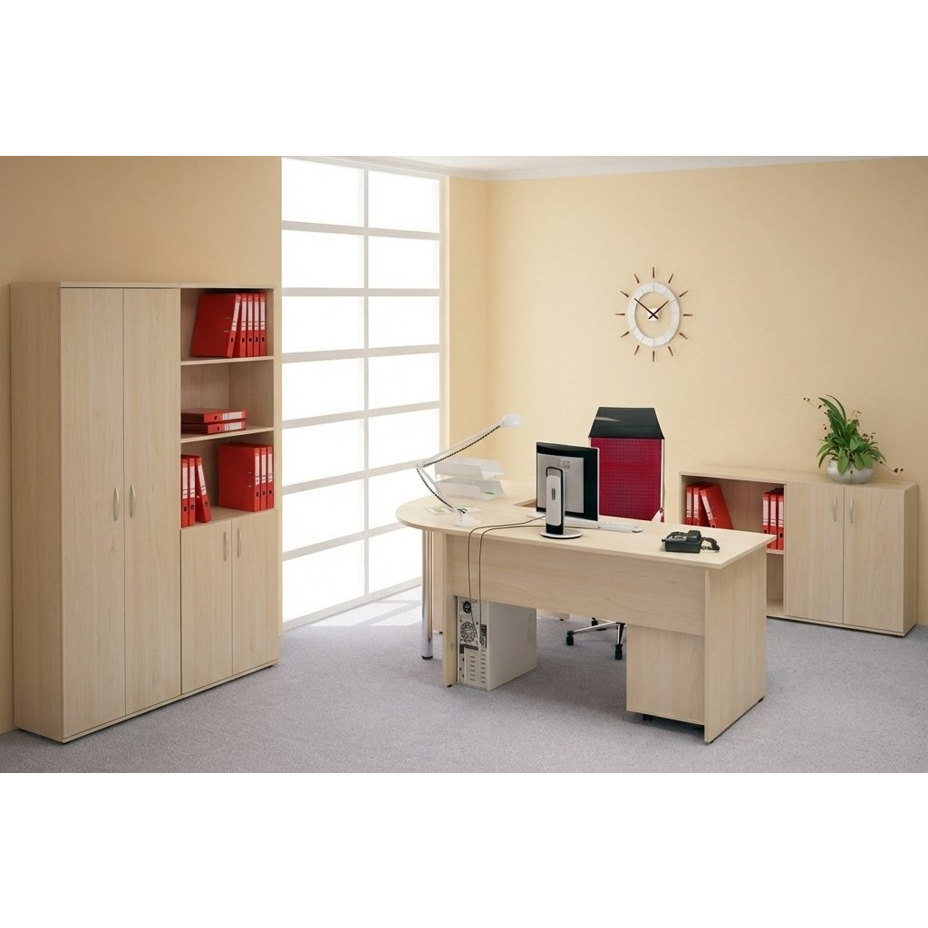 Sestava kancelářského nábytku Impress 1 PLUS je vhodná zejména do administrativních kanceláří a kanceláří zaměstnanců. Jedná se o cenově nejvýhodnější nábytkovou řadu.