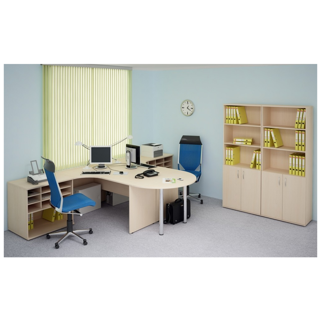 Sestava kancelářského nábytku Impress 4 je vhodná zejména do administrativních kanceláří a kanceláří zaměstnanců. Jedná se o cenově nejvýhodnější nábytkovou řadu.