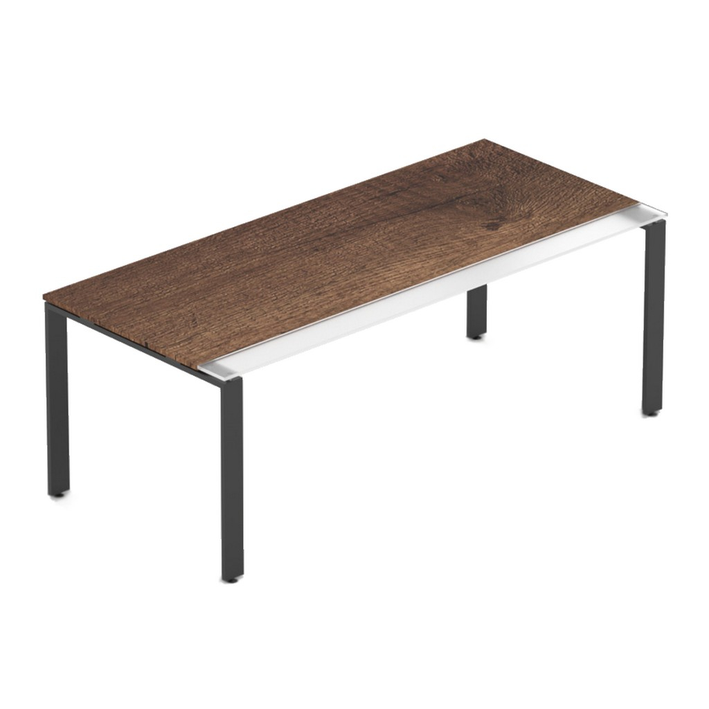 Kancelářské stoly Creator zaujmou na první pohled svým sebevědomým designem. Štíhlá kovová podnož, jednoduché tvary, elegantní deska – tato kombinace zkrátka potěší i nejnáročnější. U této varianty okraj desky zdobí skleněná lišta, která ještě více ozvláštní vzhled celého stolu.