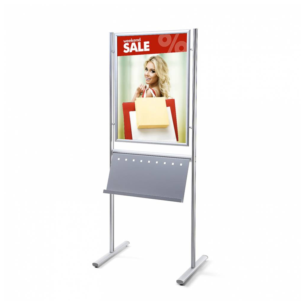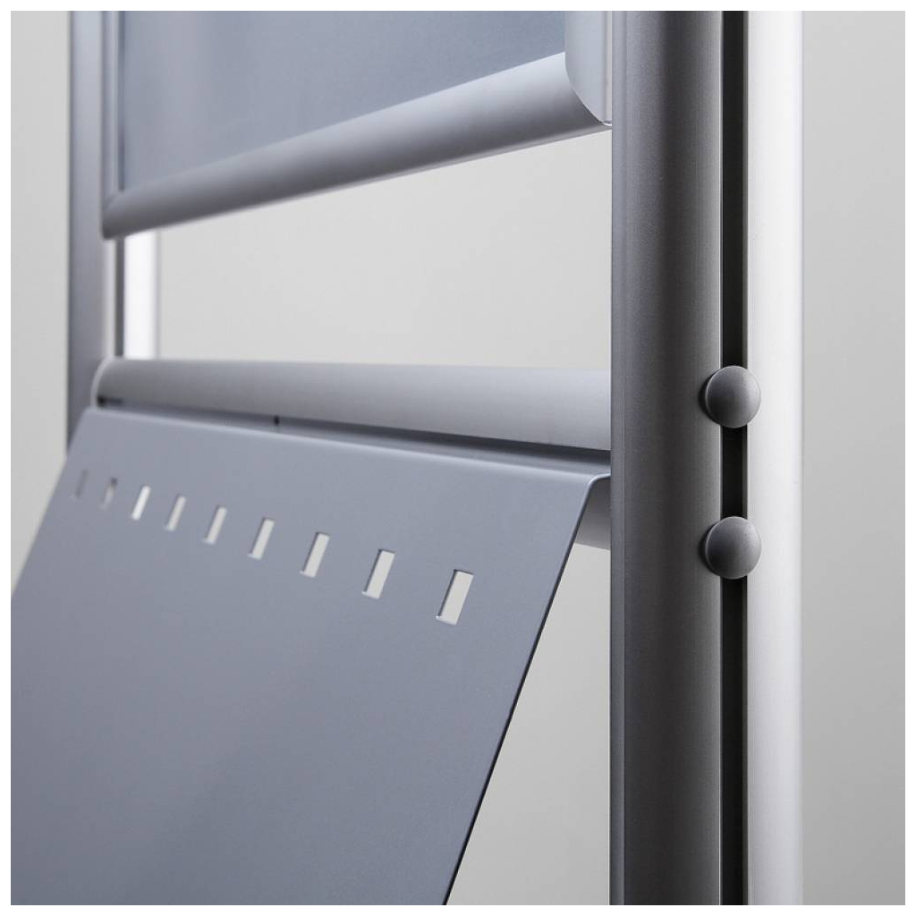 Tato praktická kapsa vašemu infoboardu s klaprámem přidá novou funkci – slouží jako stojan na brožury. Montáž spočívá v přišroubování ke spodní příčce, a to u následujících modelů:
