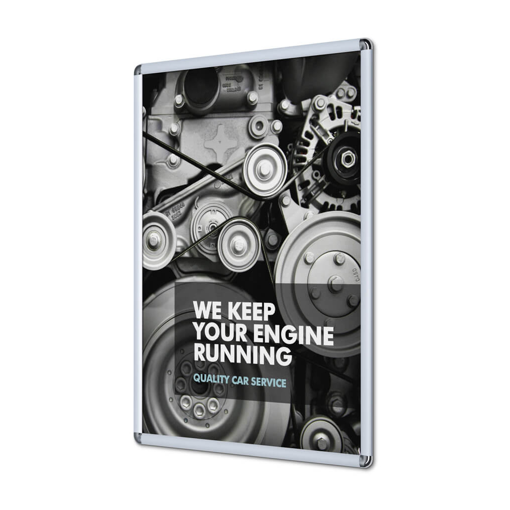 Klaprám ve velikosti A1 je skvělým řešením pro prezentaci tiskovin, a to nejen v kancelářském prostředí. Tento moderní nástroj je vyroben z kvalitního eloxovaného hliníku, který je doplněn plastovou stěnou na zadní straně a fólií s UV filtrem, zabraňující vyblednutí a poškození obsahu. Jednoduchost klaprámu spočívá v pohodlném sklopení jedné či více stran rámu a následné instalaci tiskoviny, kterou zvládne úplně každý. Díky velmi nízké hmotnosti a šířce pouhých 20 mm je také velice praktický a vhodný především pro zavěšení na stěnu, kde bude vzhledem ke svým oblým rohům také dobře vypadat. Klaprám A1 je dodáván ve stříbrné barvě.