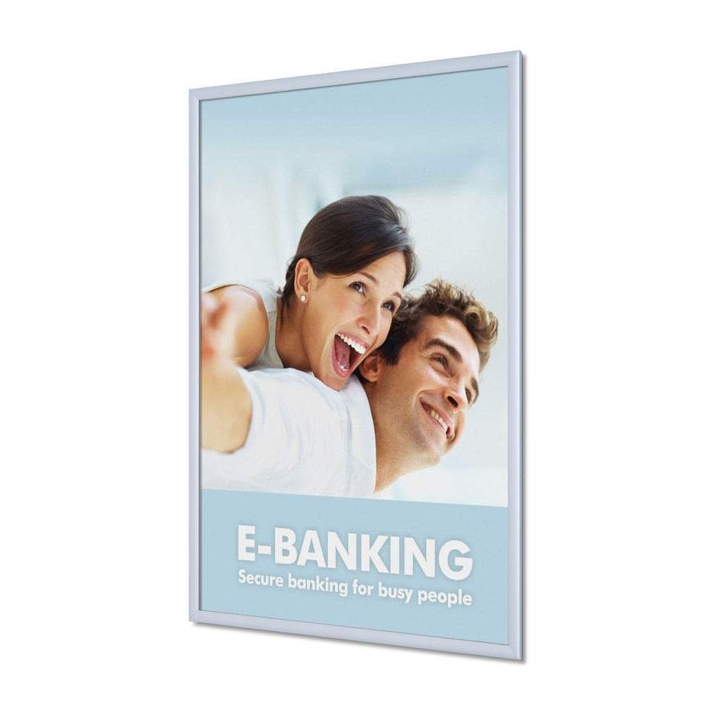 Klaprám ve velikosti A1 je skvělým řešením pro prezentaci tiskovin, a to nejen v kancelářském prostředí. Tento moderní nástroj je vyroben z kvalitního eloxovaného hliníku, který je doplněn plastovou stěnou na zadní straně a fólií s UV filtrem, zabraňující vyblednutí a poškození obsahu. Jednoduchost klaprámu spočívá v pohodlném sklopení jedné či více stran rámu a následné instalaci tiskoviny, kterou zvládne úplně každý. Díky velmi nízké hmotnosti a šířce pouhých 20 mm je také velice praktický a vhodný především pro zavěšení na stěnu, kde bude vzhledem ke svým ostrým rohům také dobře vypadat. Klaprám A1 je dodáván ve stříbrné barvě.