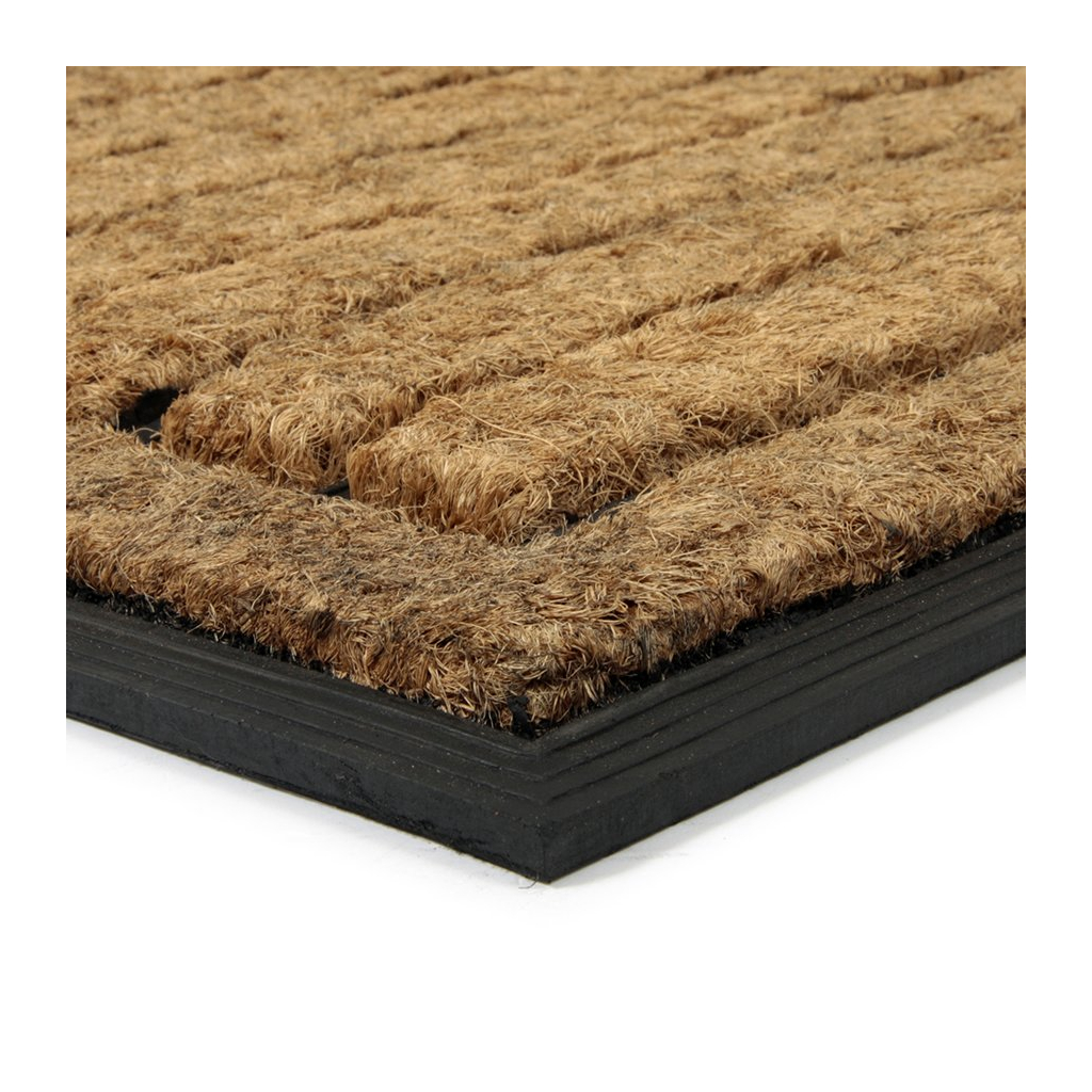 Gumová rohož s kokosovými vlákny se postará o očištění obuvi od jemnějších nečistot, jako je třeba bláto či zbytky sněhu. Kokosový povrch je příjemný na pohled a pomůže boty i částečně osušit.