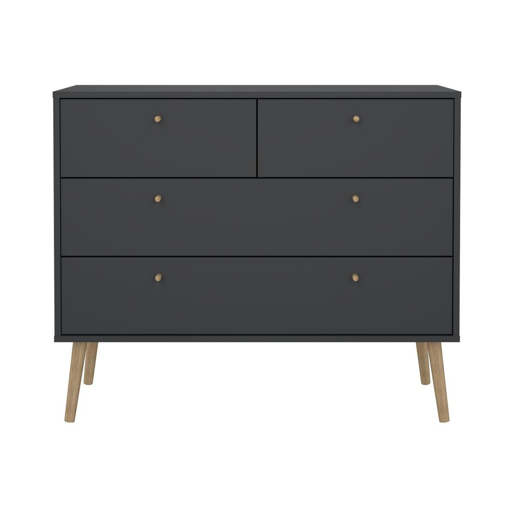 Stabilní dřevěná konstrukce zaručuje dlouhou životnost, zatímco dostatečná kapacita zásuvek nabízí praktický úložný prostor pro vaše věci. Komoda je navržena tak, aby spojila funkčnost s estetickou čistotou, čímž přispívá k příjemné atmosféře vašeho domova.