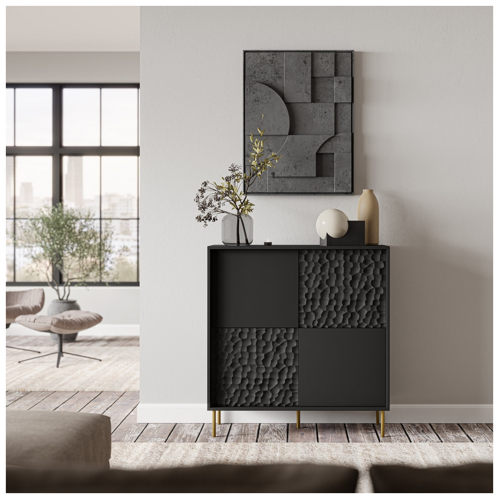 Komoda Bullet 2 vám do ložnice, obýváku nebo kanceláře přinese spoustu úložného prostoru v moderním kabátě. Její design nejlépe zkombinujete s dalšími prvky nábytku Bullet – třeba TV stolkem nebo vitrínou.