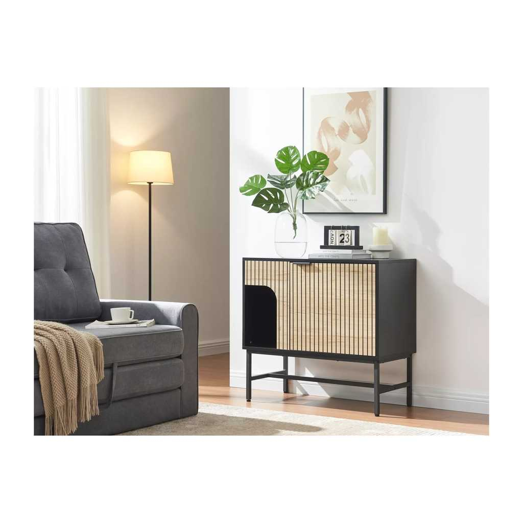 Komoda Cabredo III představuje praktický a stylový doplněk do vašeho interiéru. Kombinace dřevěných a kovových materiálů zajišťuje nejen odolnost a stabilitu, ale také moderní vzhled. Díky svým rozměrům 75 cm na šířku, 40 cm na hloubku a 80 cm na výšku se hodí do různých prostor, kde potřebujete uspořádat a uložit věci přehledně a elegantně.