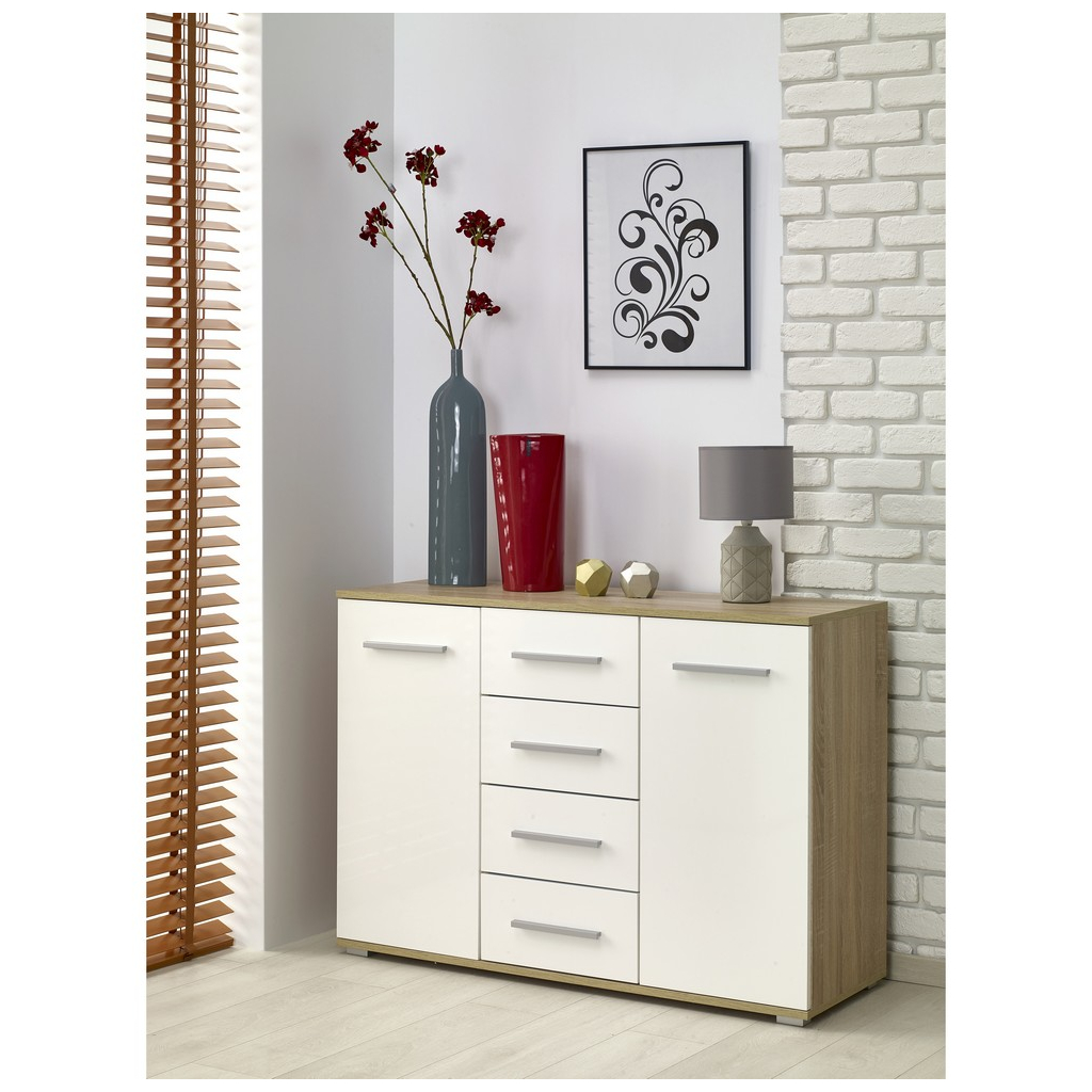 Komoda Lima IV, bílá / dub sonoma