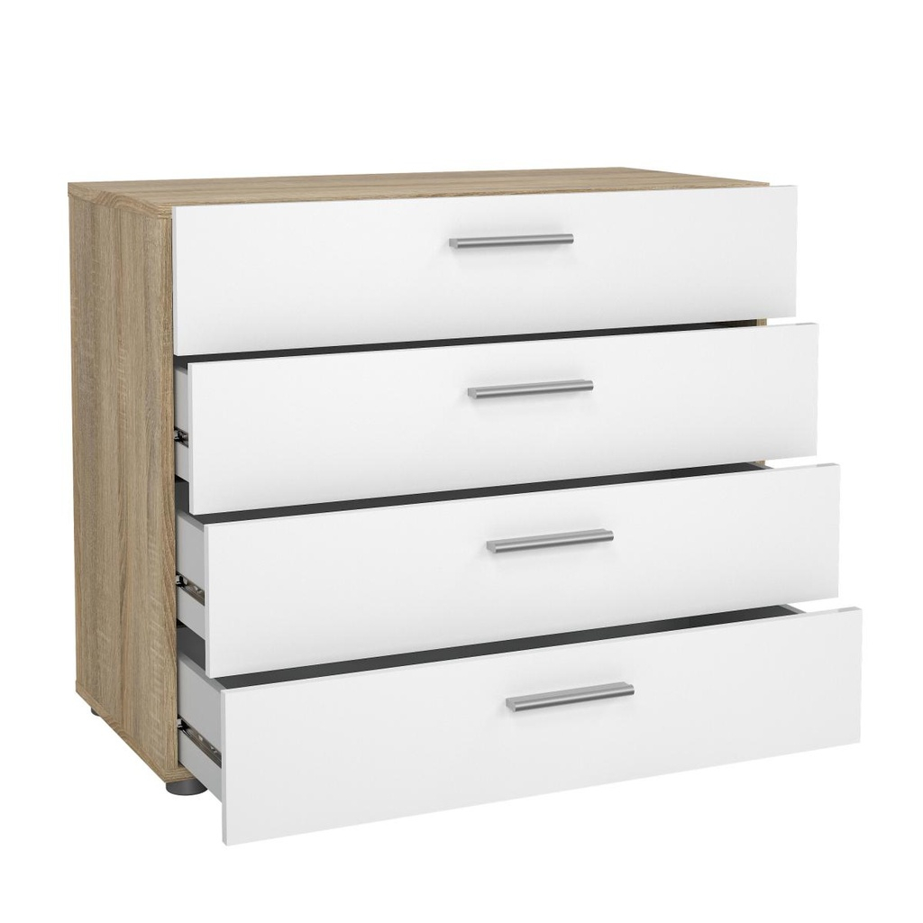 Tento model je vybaven čtyřmi dostatečně velkými zásuvkami, kde můžete pohodlně uschovat vaše věci a udržet pořádek v místnosti. Díky své kompaktní velikosti nezabírá mnoho místa, přesto nabízí dostatek úložného prostoru tam, kde je potřeba.